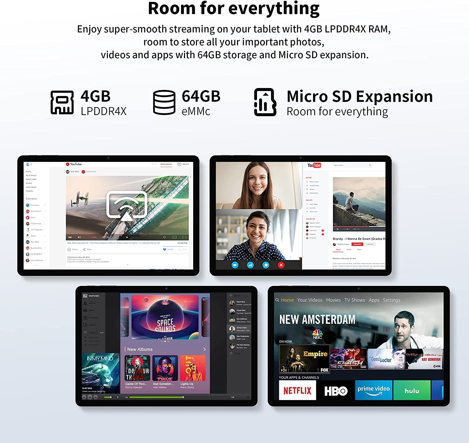 Pre-installed Google play store gives you full access to millions of the latest Android apps, games, music, movies, books & more.