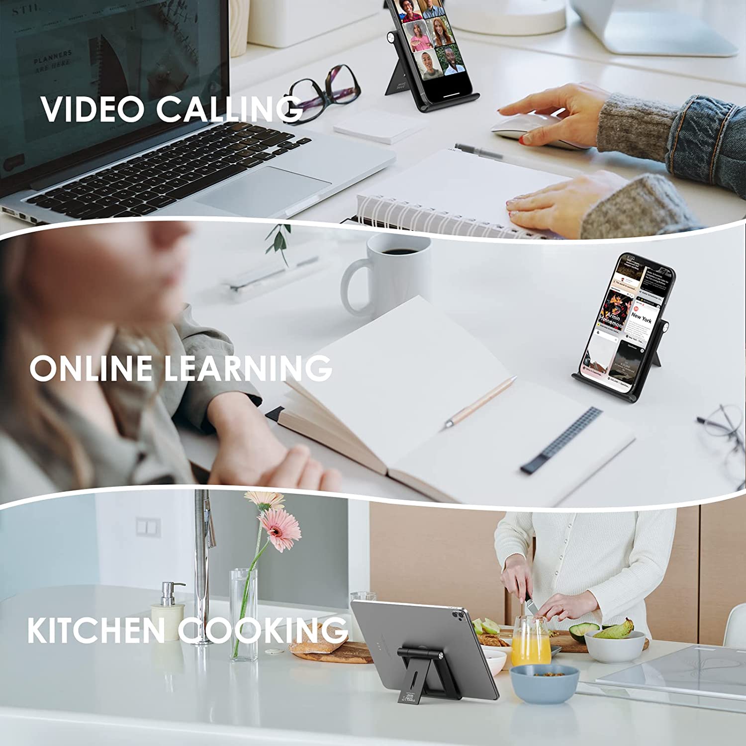 Portable and Lightweight: Foldable size of 3.78*3.15*0.67 in(L*W*T) and weights only 0.09lbs(40g), compact and portable. The phone holder stand is fully collapsible, it can be easily adjusted to ideal position, free your hands, which is a good desk accessories while watching video, playing games, making phone call, viewing recipes or using Facetime.
