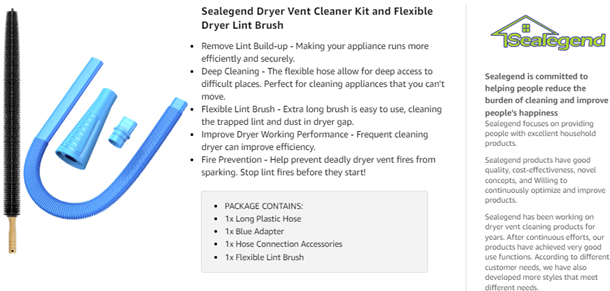 • [PACKAGE CONTAINS] - 1* Sealegend dryer vent cleanerkit. Include:1xVacuum adapter, 1x2.6Feet cleaning pipe, 1xFlexible Lint Brush.