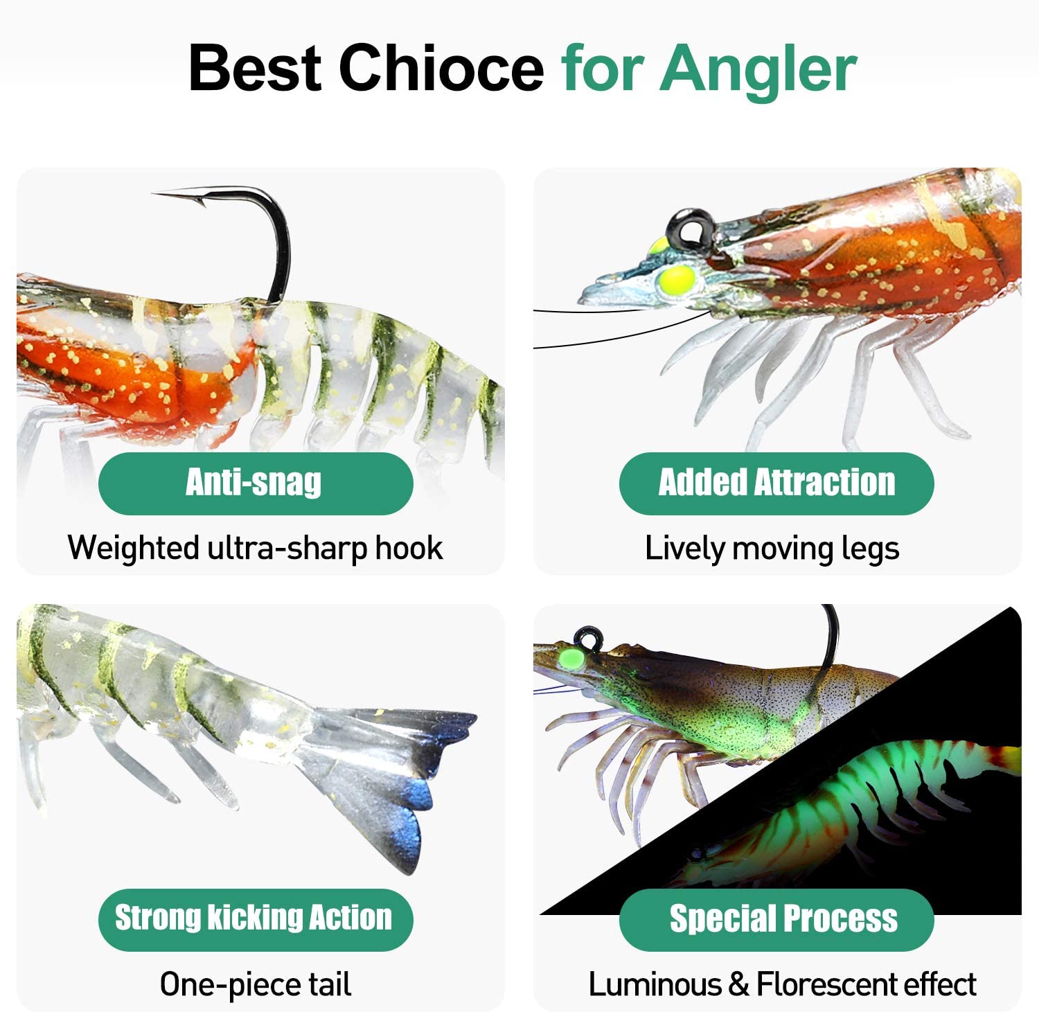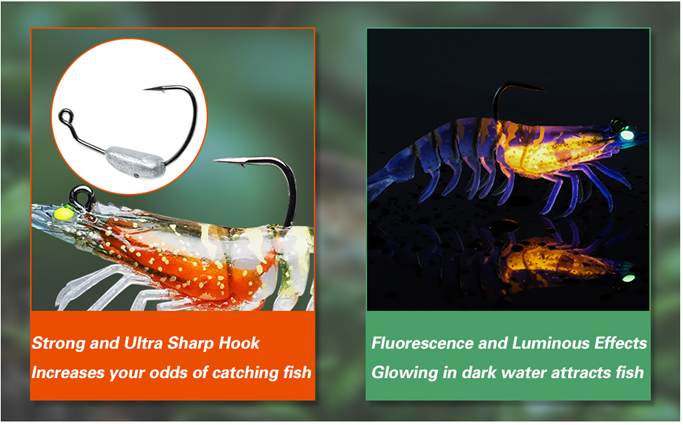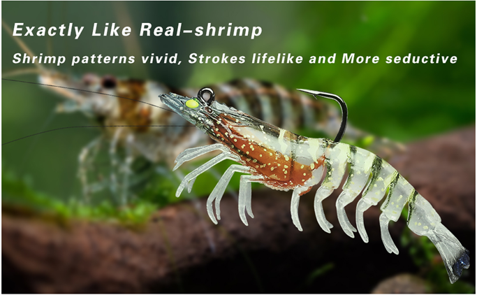 • REALISTIC ACTION - TRUSCEND shrimp features a segmented body that creates lifelike swimming movements in the water that will have any catch convinced. The special tail creates a kicking action, while the lively moving legs, antenna perform lifelike actions on the retrieve and the drop, which adds more attraction.