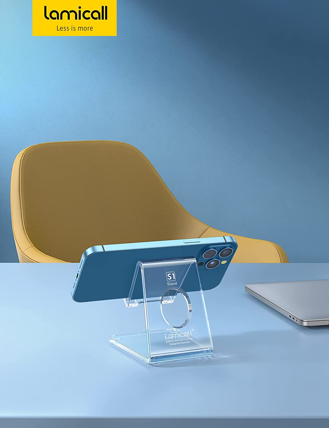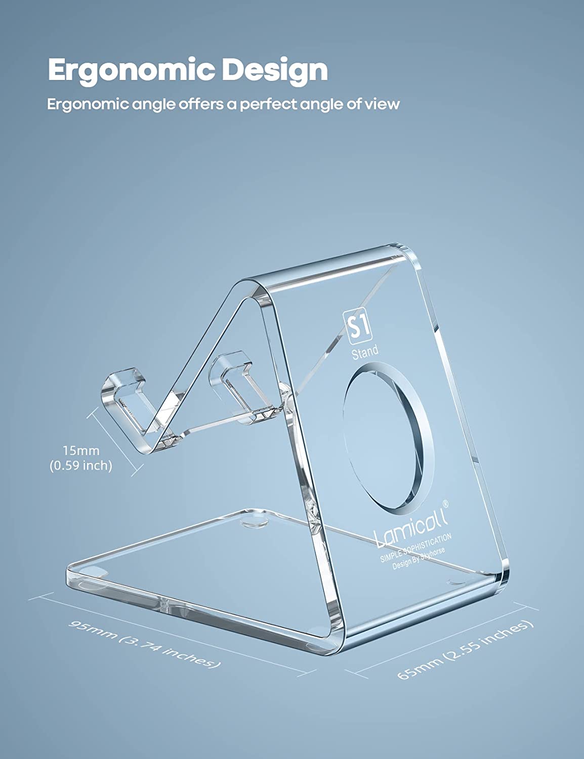 Lamicall Acrylic Phone Stand Desk Accessories - Clear Office Cell Phone Holder, Transparent Phone Stand for Desk, Desktop, Office Desk Accessories, Suitable for iPhone Accessories, 4-8'' Phone
