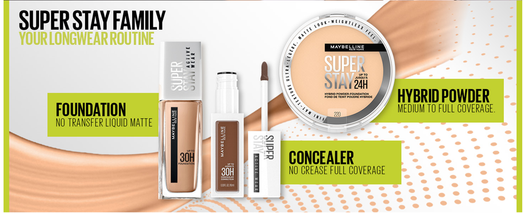 - Soft Matte Make Up Look: Maybelline New York Super Stay Hybrid Powder Foundation gives up to 24 hours of medium-to-full foundation coverage with a soft matte finish. Comfortable, weightless feel that resists sweat, water or makeup transfer
