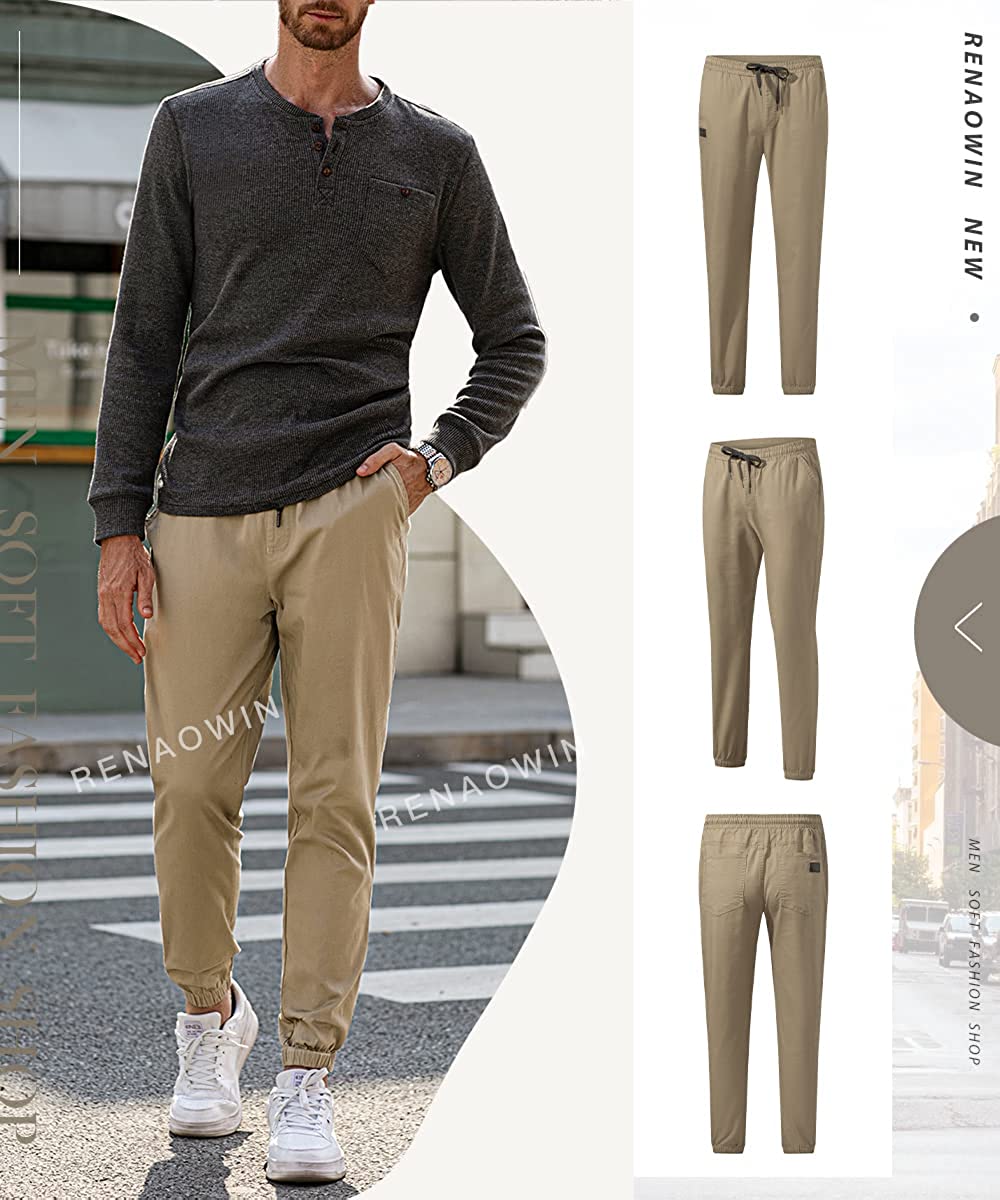 TWILL ELASTIC AND COMFORTABLE BREATHABLE MATERIAL: Cargo pants for men made of 94%Cotton+6%Elastane, more breathable, softer, and the good for wicking sweat. Casual chinos pants men made of highly elastic dry fit material, which is very nice and cool to exercise and providing great flexibility and sports comfort in daily life.