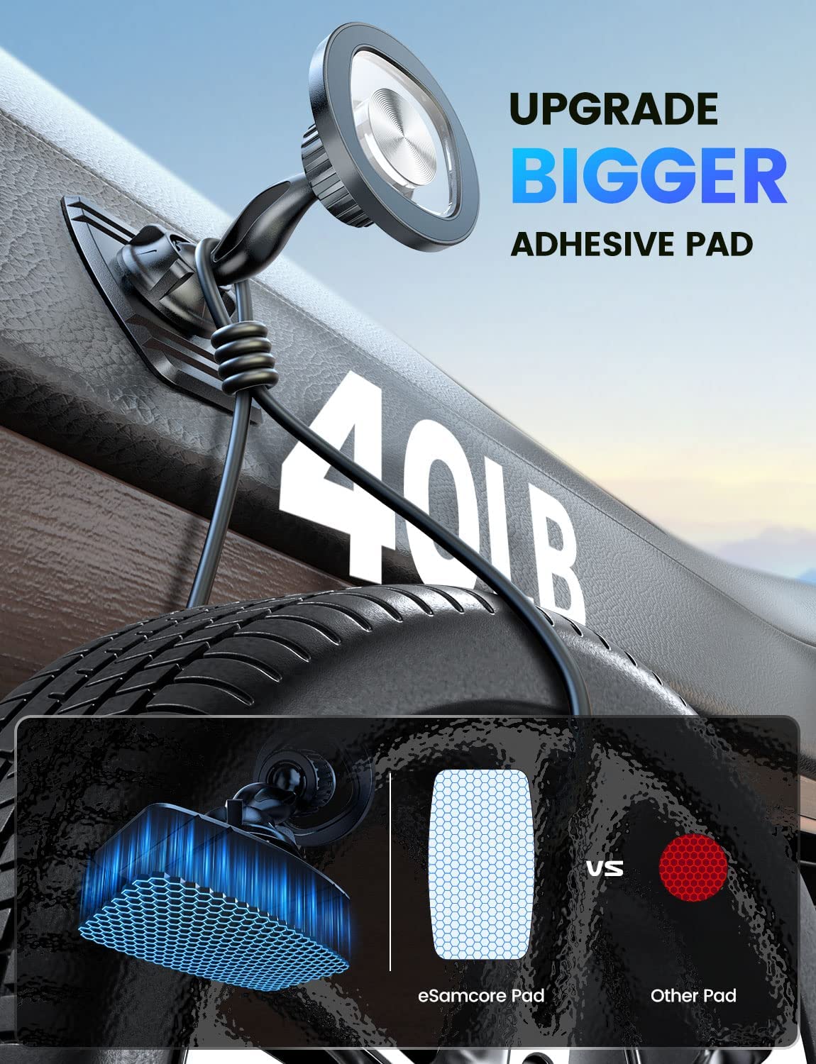 ?【Bigger Adhesive Pad】: In 2022, we upgraded the base of car cell phone holder to a larger size. The size of the adhesive pad on phone car mount was increased to 1.51 X 2.71 inch. Larger adhesive pad makes magnetic car mount more stable.