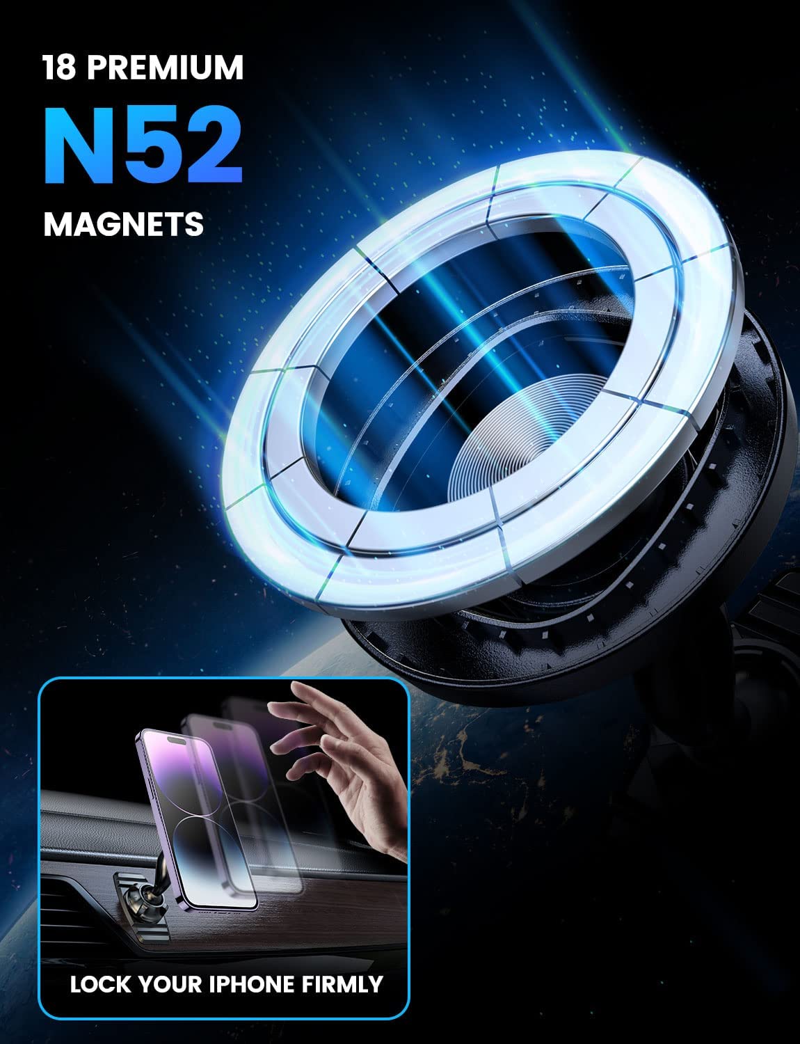 ?【Dual 360° Rotating Car Mount】: Our eSamcore magnetic phone mount is equipped with new double 360°swiveling ball joints; it allows the iPhone car mount to be adjusted for more viewing angles. So you can place this MagSafe car mount on the top position or low position of the dashboard wherever you like.