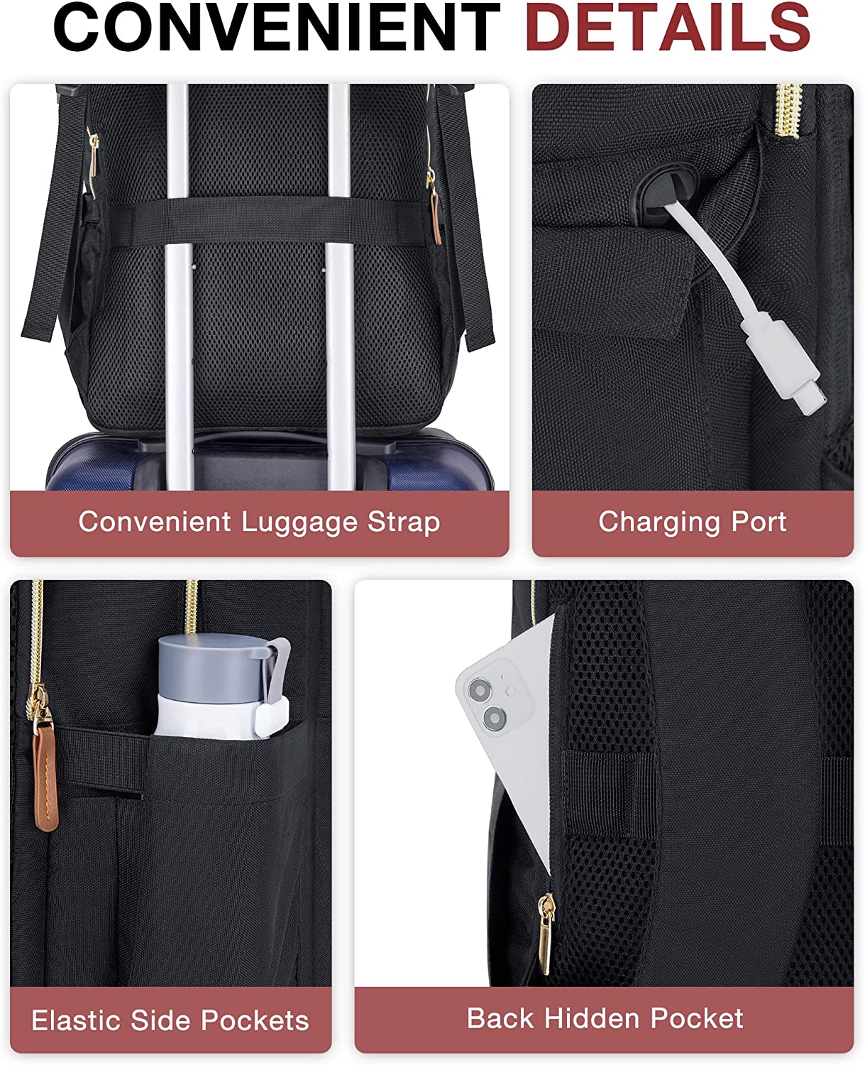 Multipurpose: Its chic look makes it as a travel backpack, laptop backpack, college backpack, casual daypack, computer backpack, bookbag. The airline approved carry-on can be fitted overhead and under-seat, is ideal for the weekend trip, business trip and travel. This roomy backpack is perfect as a gift for friends, family, women or college, for birthdays, Valentine's Day, Christmas Day