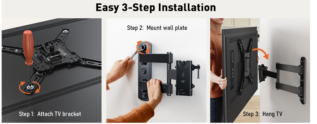 • Easy 3-Step Installation: Detailed instructions and mounting hardware are included with the Perlegear single stud TV mount for hassle-free installation. Simply attach the TV brackets, mount the wall plate, then hang your TV.