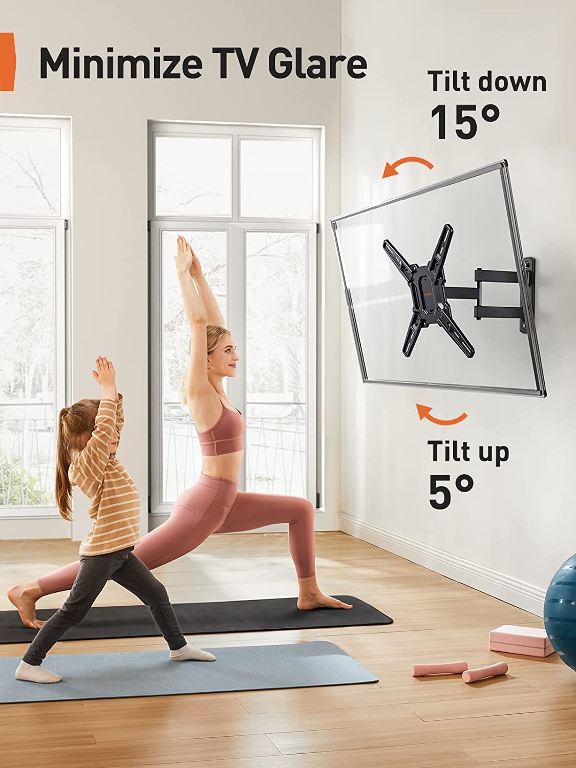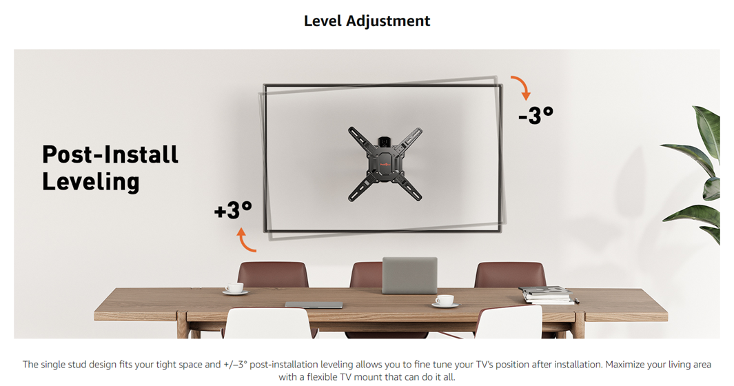 • Comfortable Viewing Experience: This 55 inch TV wall mount can help to minimize glare thanks to +5°/–15° tool-free tilt. Redirect the screen toward your position with +/–90° swivel and level your TV +/–3° after installation to fine tune your TV's position.
