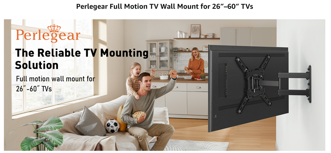Perlegear UL Listed Full Motion TV Mount for Most 26–60 inch Flat or Curved TVs up to 82 lbs, Wall Mount TV Bracket with Articulating Arms, Tool-Free Tilt, Swivel, Extension, Max VESA 400x400mm, PGMF3