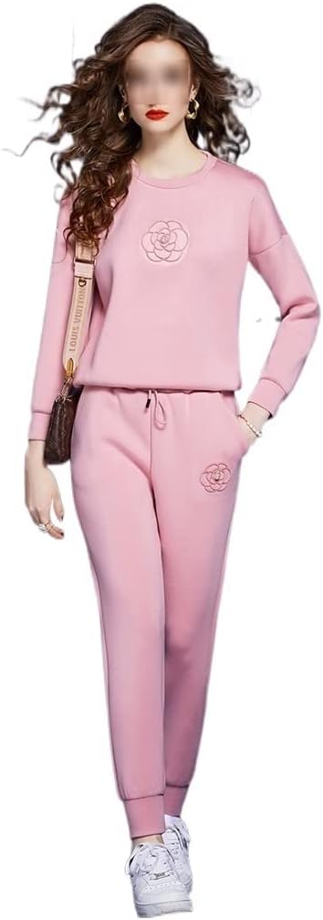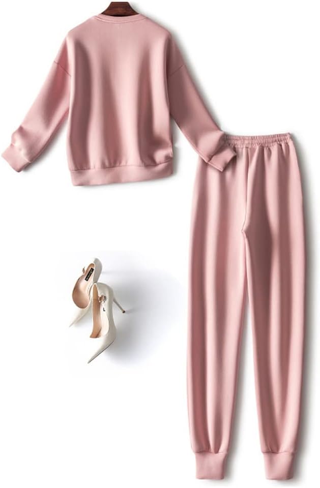 n/a Autumn Casual Sporty Pants Sets 2 Pieces Womens Outfits Winter Fashion Long Sleeve Hoodies Sweatshirt Trousers Suits Pink (Color : Pink, Size : XL Code)
