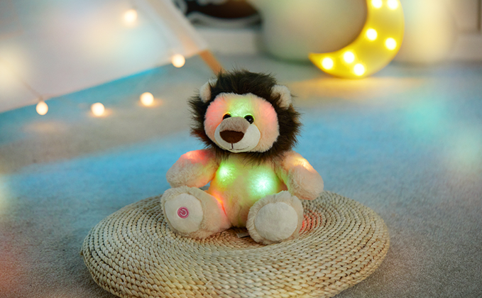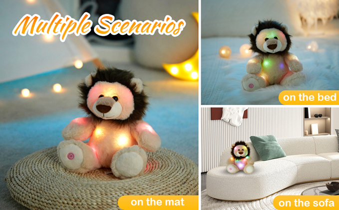 GUARD THE KIDS IN DARKNESS-The cuddly light up stuffed lion can guard the kids in the dark for it features a great function of glowing, there are colorful LED night lights inside, which can bring soothe and sense of security for the children, especially for those who are afraid of darkness or sleeping alone. The cute lion plush toy will be a good friend of your kids and accompany them to have a happy childhood.
