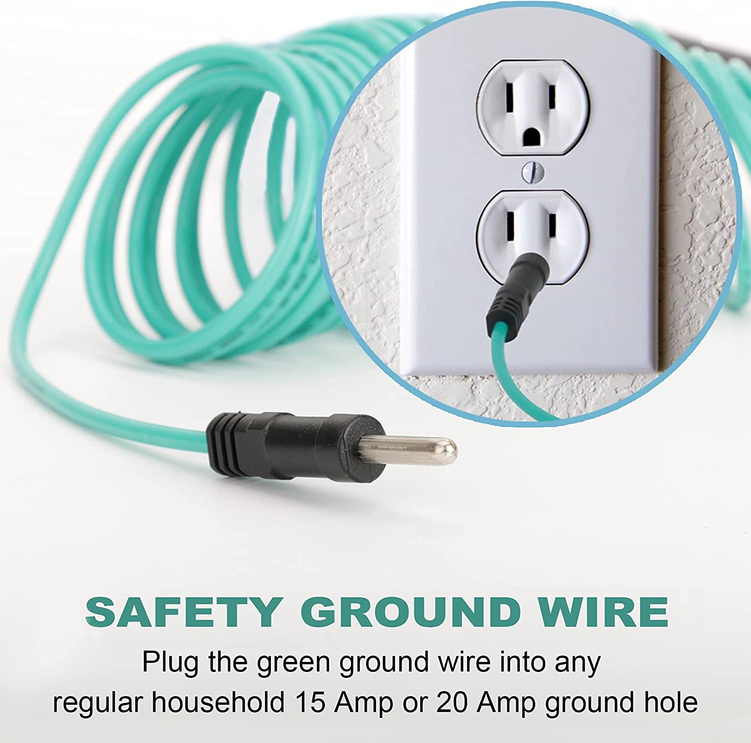- 【SAFETY GROUND WIRE】 The additional green ground wire is very important, please make sure you connect the round terminal of the green wire to the grounding hole of 15 amp or 20 amp 125v household wall socket/outlet/power strip/extension cord to protect your dryer.
