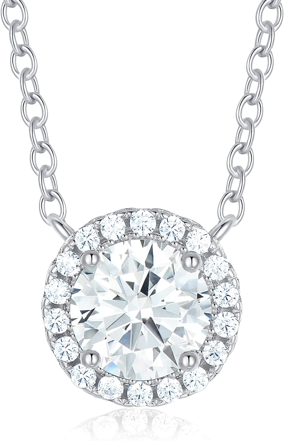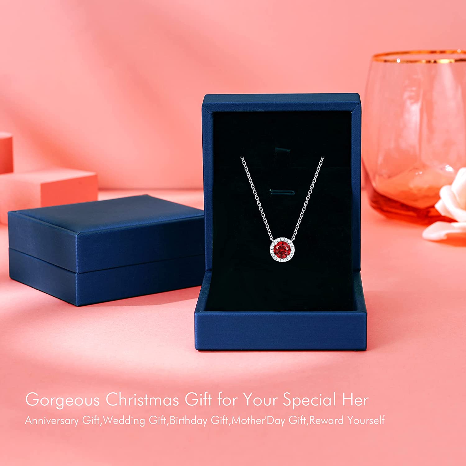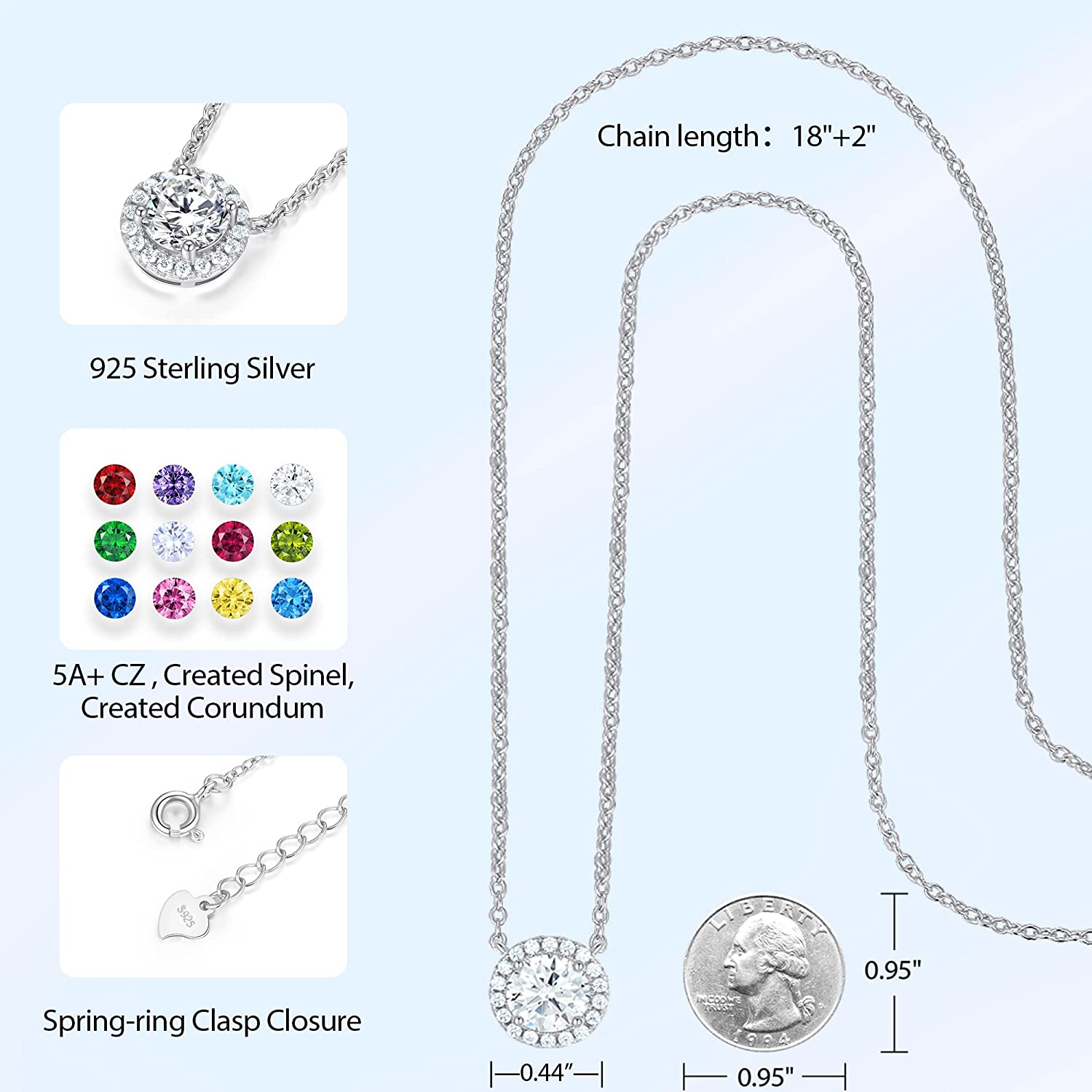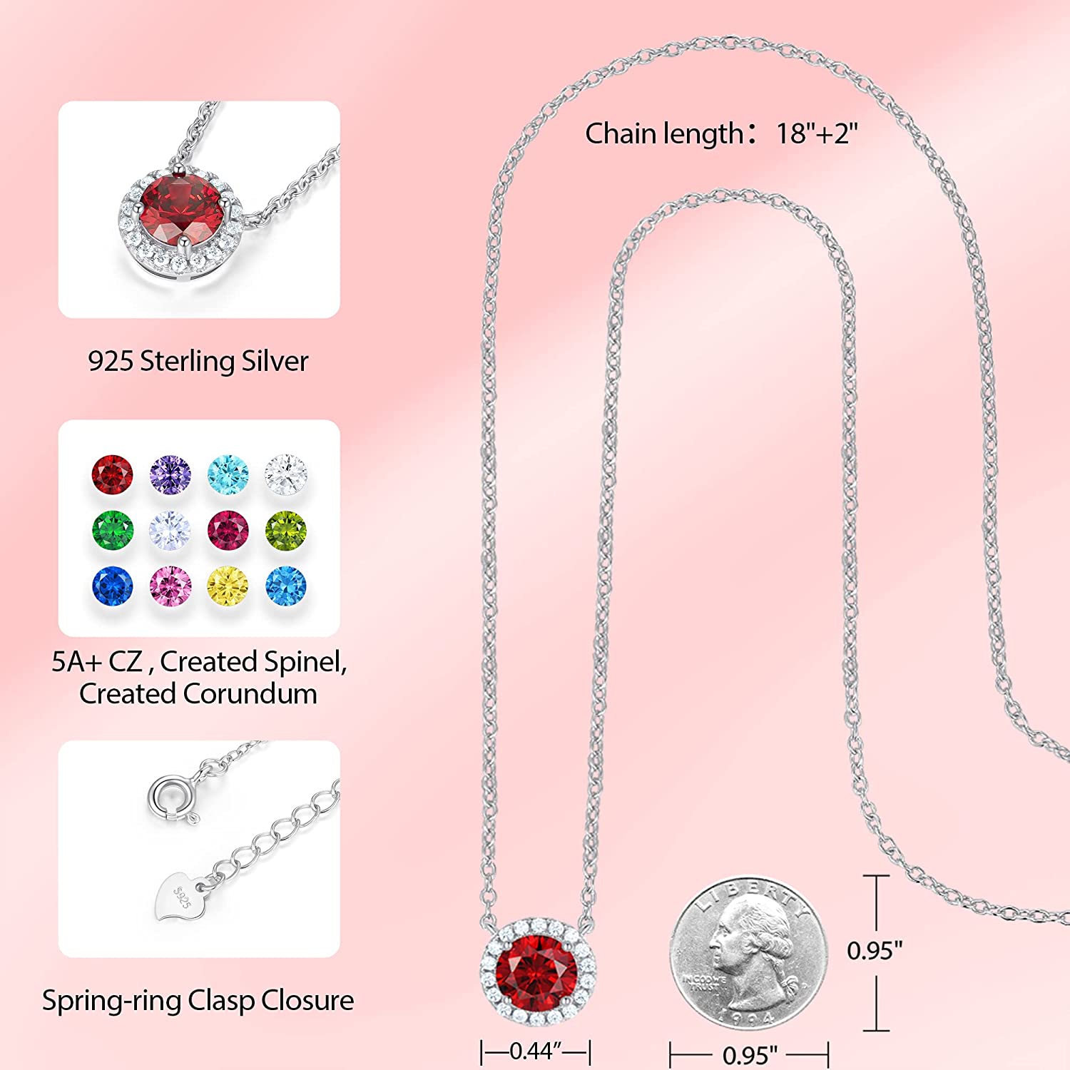 Gloffery 925 Sterling Silver Birthstone Round Solitaire Pendant Dainty Halo Necklaces for Women, Anniversary Valentine's Day Birthday Mother's Jewelry Gifts for Girls Women Wife Mom Girlfriend