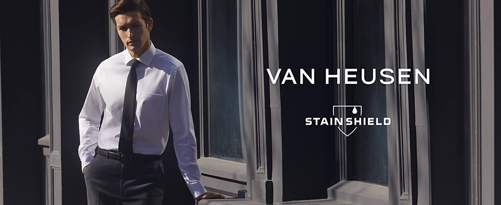 Block tough stains before they start with Van Heusen Stain Shield dress shirts. Designed for extreme stain defense even against tough water- and oil-based spills, this innovative button-up will quickly become your new go-to style at work, home, or out to dinner. When accidents happen, just rinse with running water and watch the mess roll off. The quick-drying, soft fabric also has natural stretch for added all-day comfort. The machine washable style is easy to wear right out of the dryer.