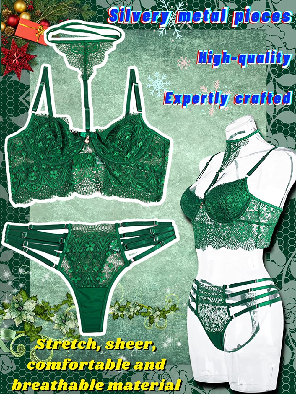 ✿Design: Lingerie set with high waisted lace thong bottom will highlight your waist line. Hook & eye back closure and adjustable straps make it easy for wearing.