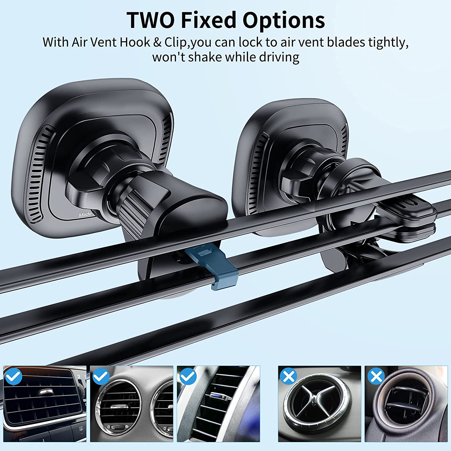 ? Easier to use: This magnetic car phone rack has no buttons, which is easier to use than the clip phone rack. The magnetic accessory just needs to place the phone close to the base of the stand, it will absorb quickly and be securely fixed on the stand. Even when driving, it can be used with only one hand.