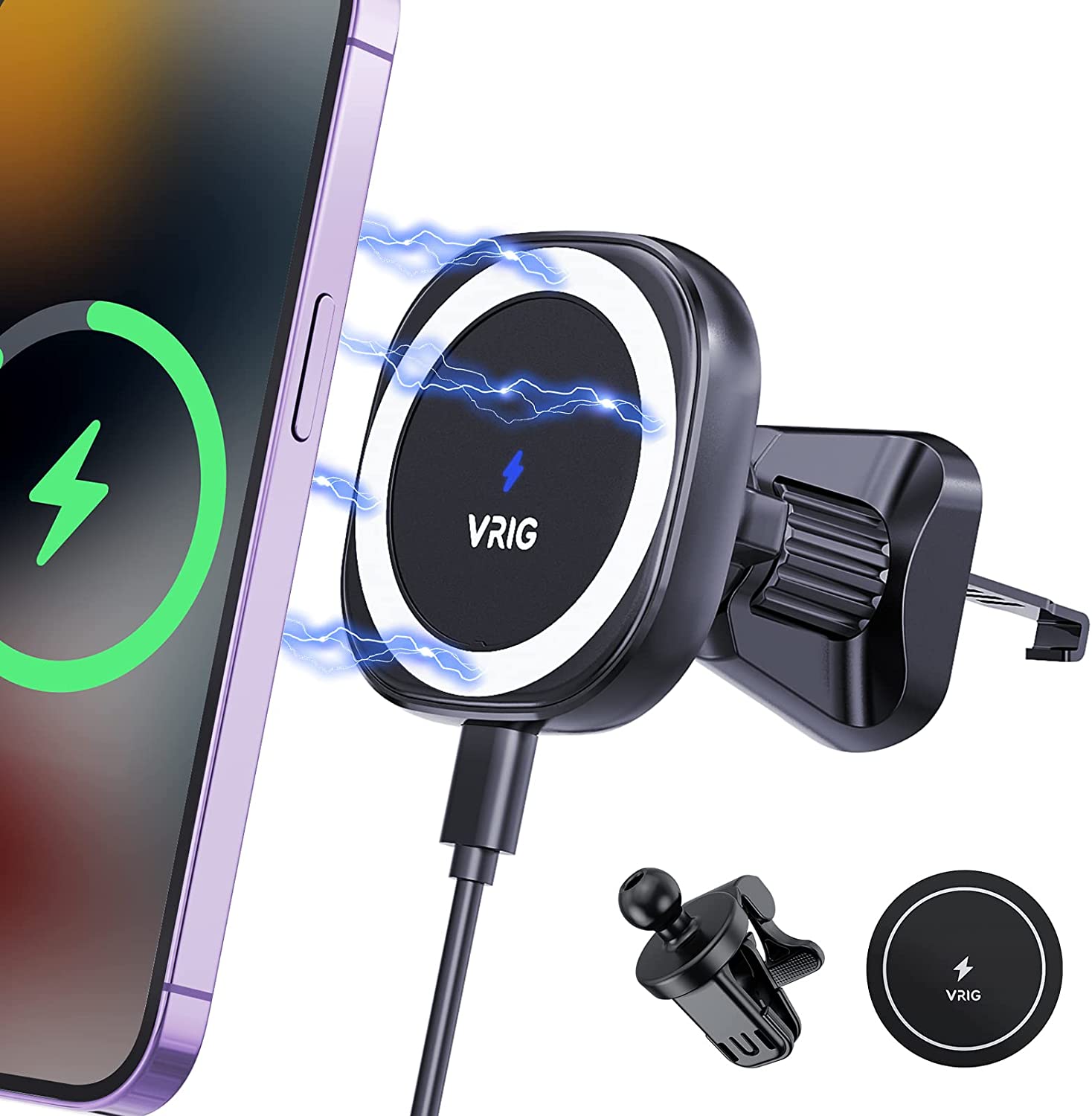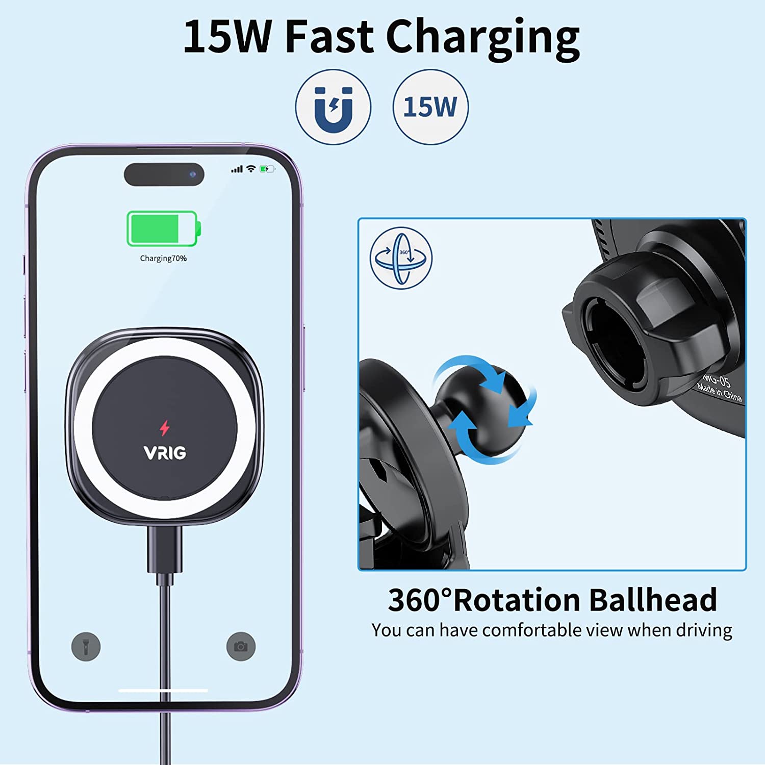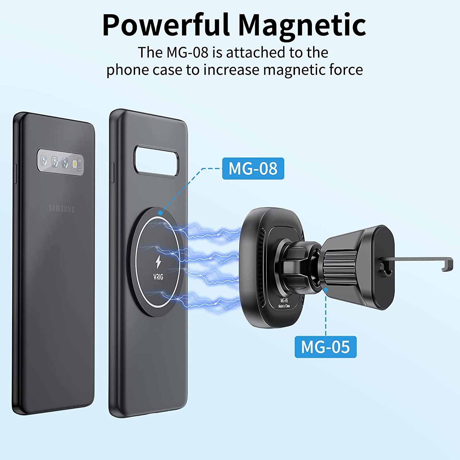 VRIG MG-05 Wireless Charging Magnetic Phone Holder for Car+Free Magnetic disc,Easily Install,15N Strong Magnets,Cell Phone Holder for Car,iPhone Car Holder Compatible with All Smartphones & Tablets