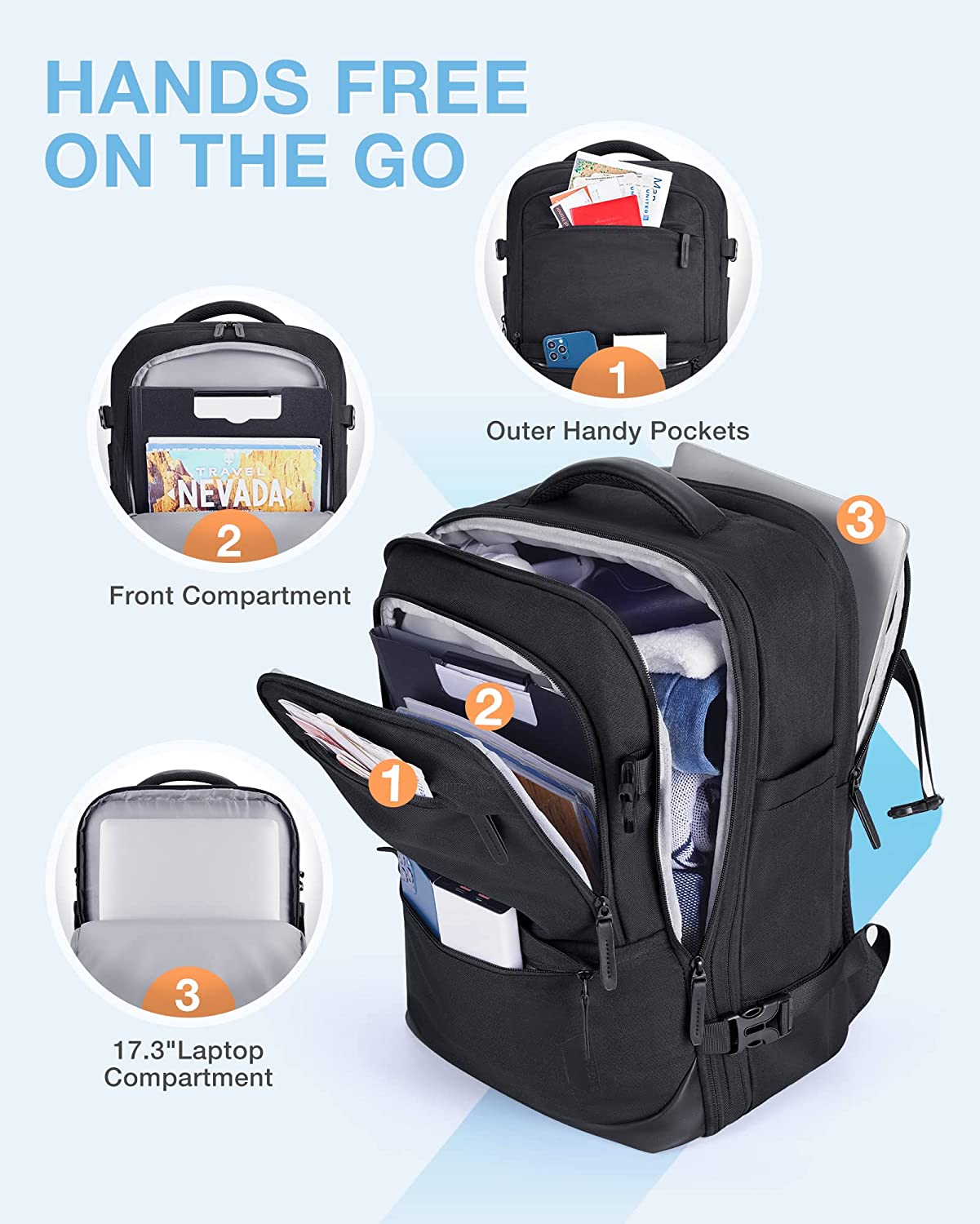 UPGRADE ITERATION: Expandable design added for the first time, with 25L-40L of travel backpack storage space to change as you wish, the maximum capacity can store 3-5 days of clothes. Of course, it does not stop there, the backpack also has a built-in elastic band, which can be compressed clothing, prevent clothes from falling, maximize the use of the backpack storage space, saving an additional 10% of capacity.