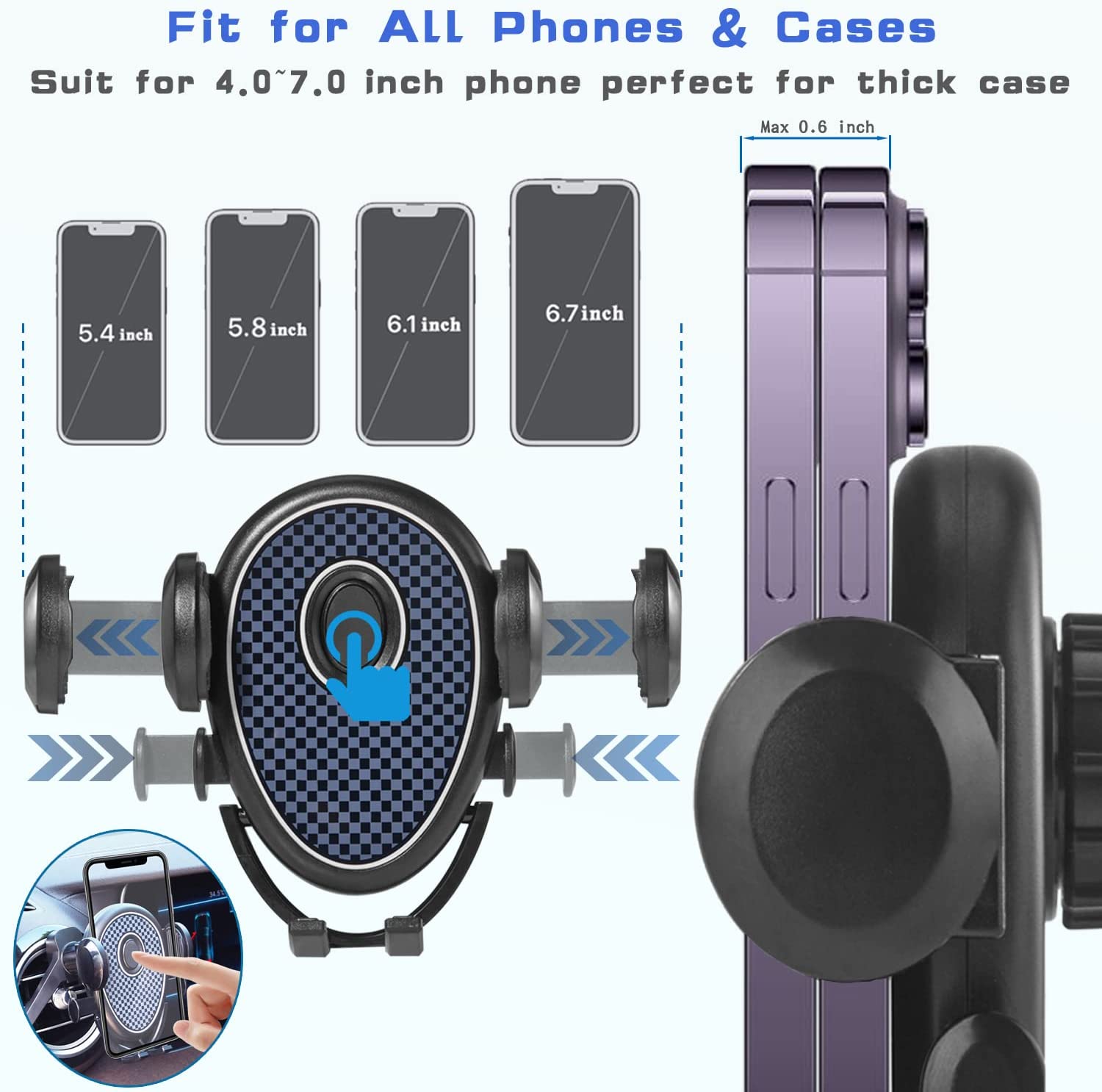 【Universal Compatibility】:This vent phone holder mount for car fits all 4.7-6.8 inches mobile phones or electronic devices, width size from 2.37 inches to 3.54 inches. Compatible with iPhone 13/13 Pro/13 Pro Max/13 Mini, 12 11 X XR XS Pro Max Mini 8 7 6 Plus SE, Galaxy S21 S20 Ultra Plus S10 S9 S8 Edge Lite Note A12 A51, LG, Moto, Pixel and more smart phones.