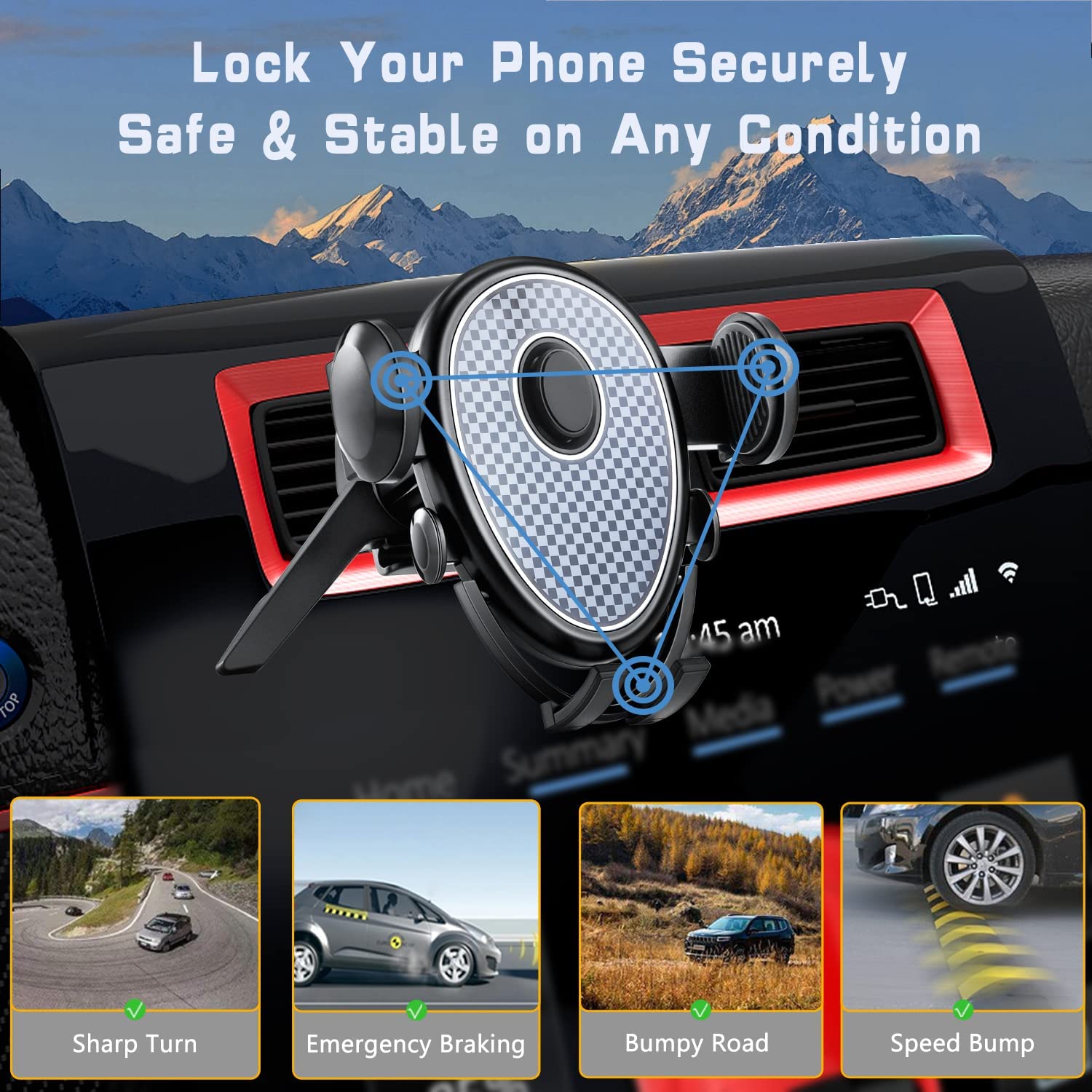 【Full Protection your Phone】car phone mount with stable triangular design and thickened silicone shock-absorbing pad, it holds your phone firmly in place even on bumpy roads or during sharp turns.100% full protection your device.