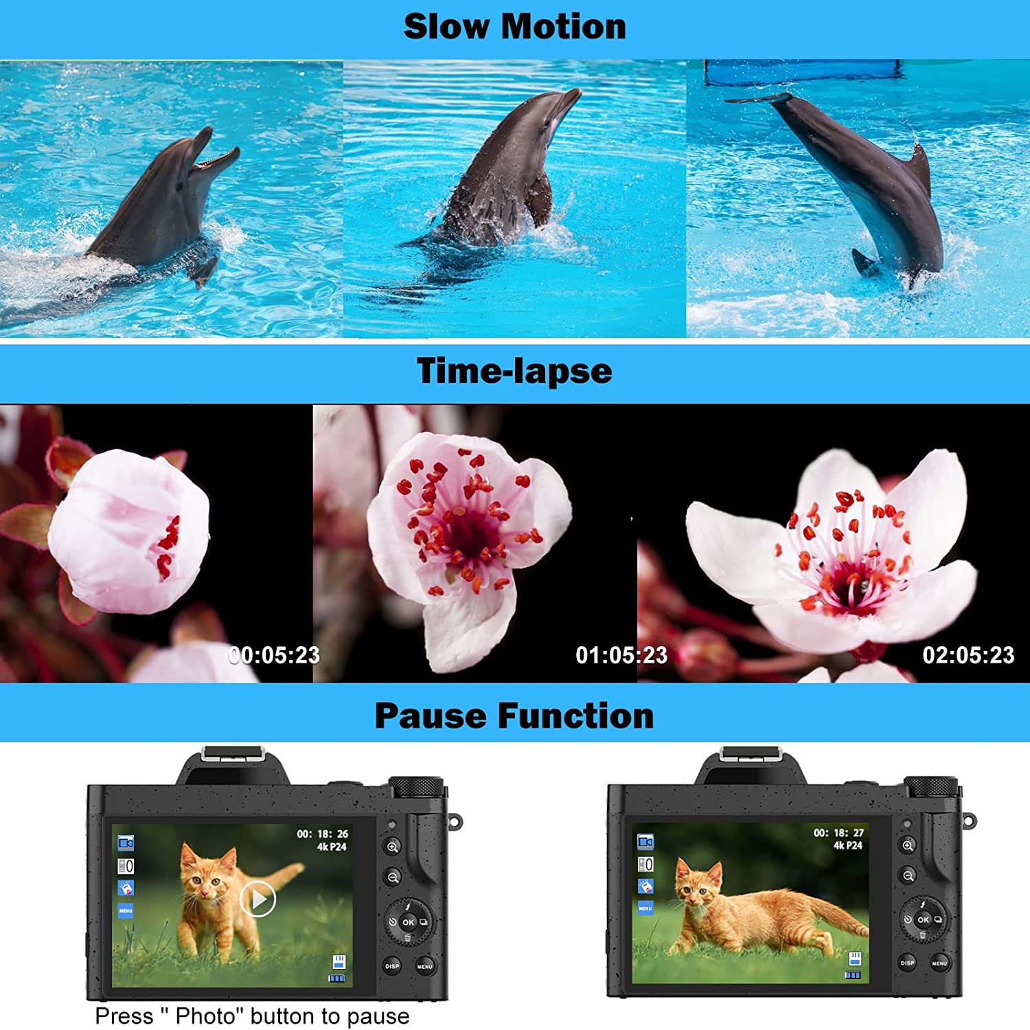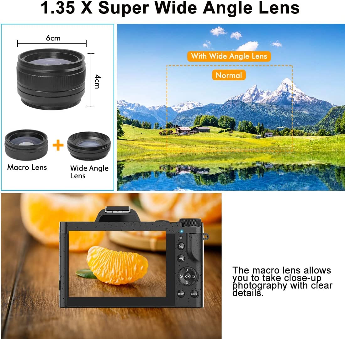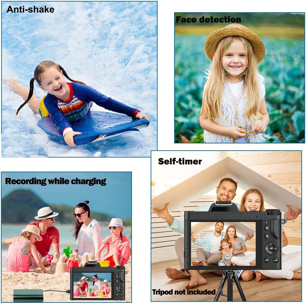 • 【FHD 4K & 48MP Digital Camera with 3.5" IPS Screen】 This digital camera adopts the 4K 30FPS full HD 4K video format to record fluid videos and let you enjoy the HD cinema video effect. Especially 48 Megapixel high-end CMOS sensor bring up your great stills quality pictures. 3.5 inch screen allows for higher-definition display. Meanwhile the vlogging camera supports 16X Digital Zoom(Not Autofocus).
