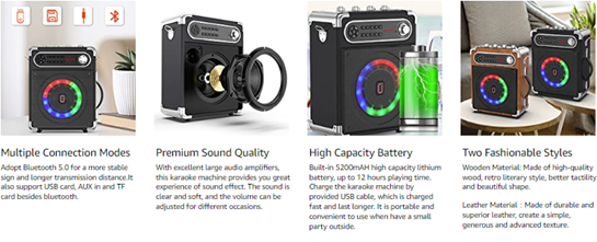 JAUYXIAN is devoted to designing high quality and fashionable karaoke machine for people to choose. The JAUYXIAN-S55 series is a new and updated portable bluetooth speaker, which has improved the appearance and sound quality of previous versions.Widely used for picnic, party, teaching and family entertainment,suitable for all ages.Equipped with recording, radio, karaoke functions. It’s a great choice for having fun with JAUYXIAN-S55 series.