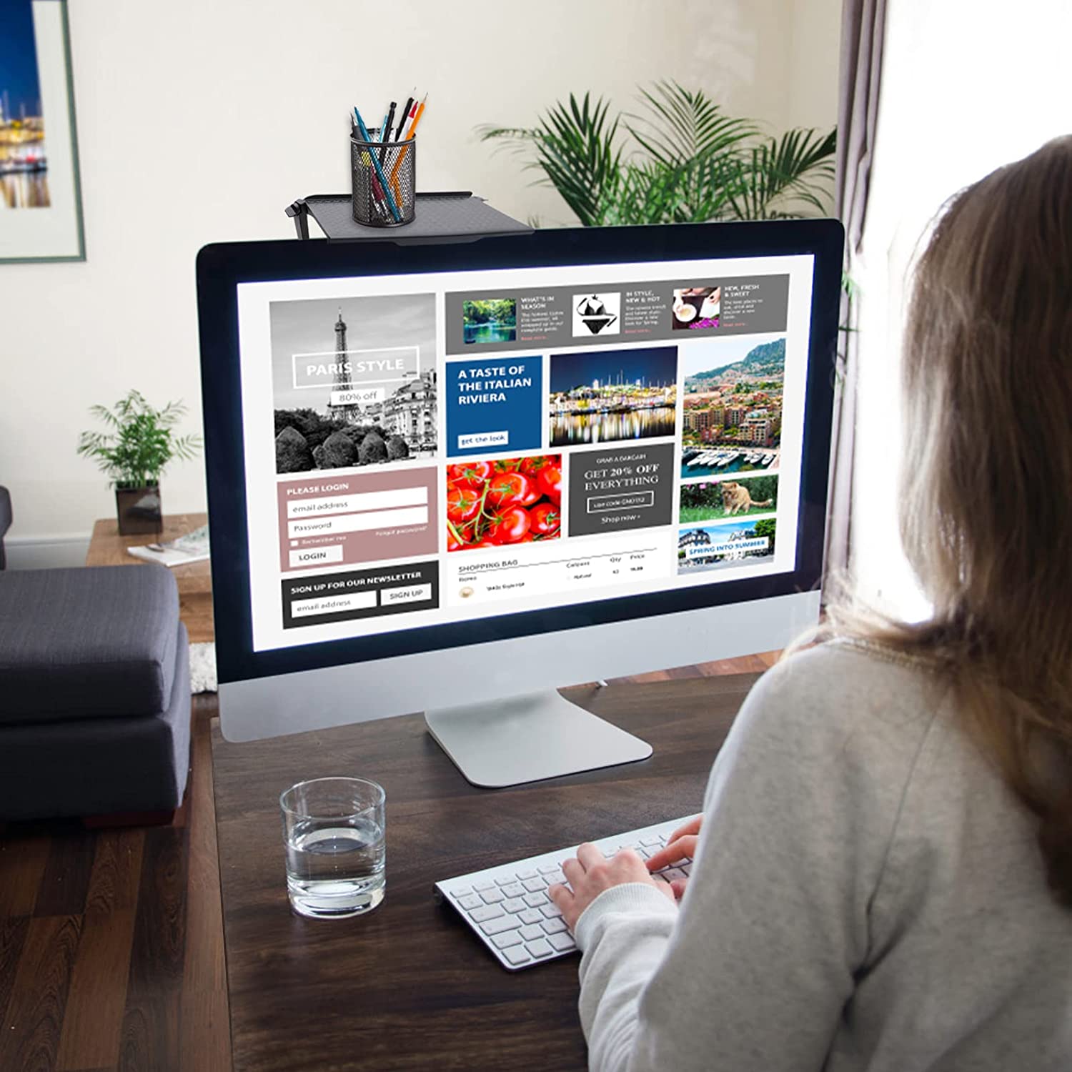 • 【Save Space】The large screen shelf is located behind the top of the screen, which does not take up your desktop space, and can store more items without drilling or gluing.