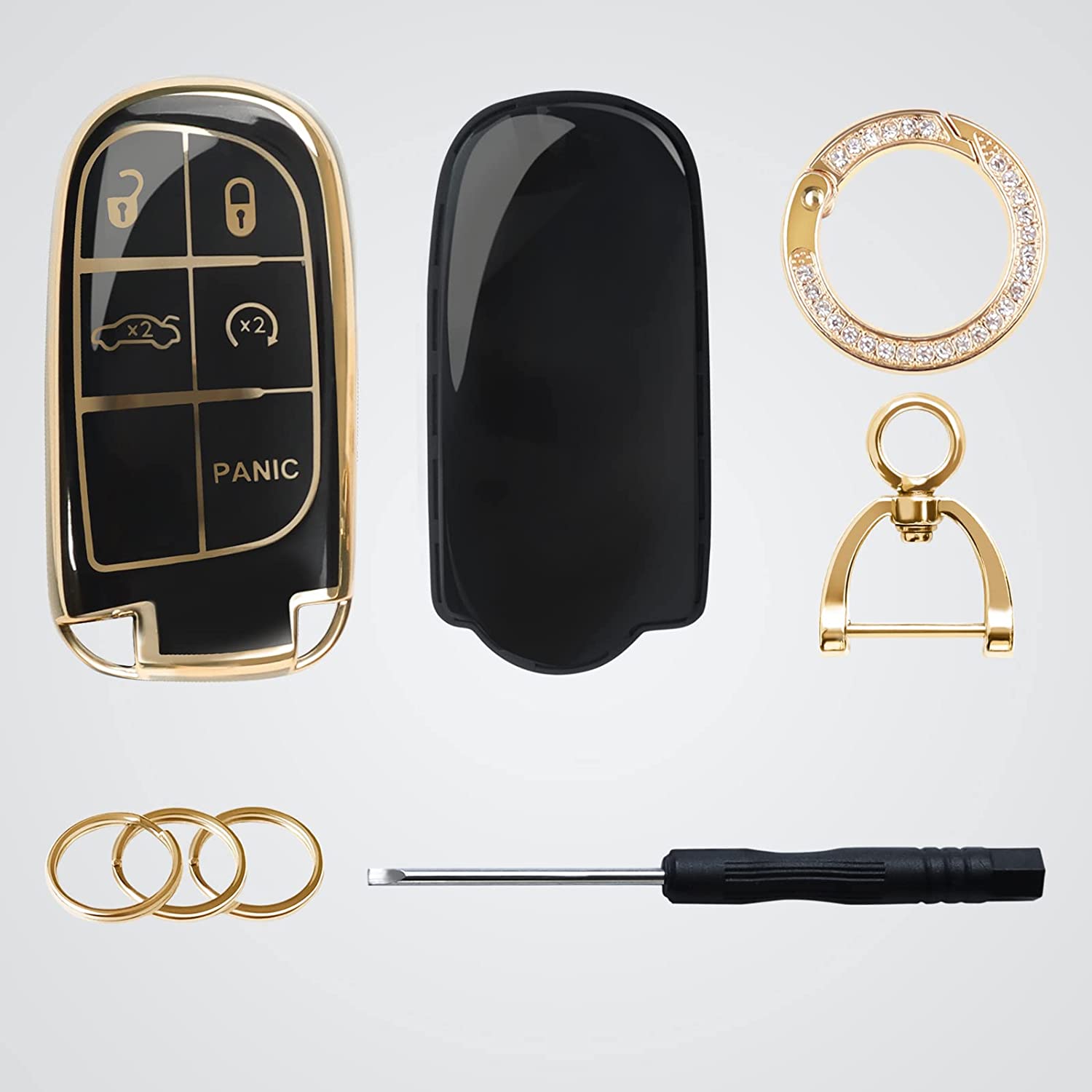【Fit Models】This key fob cover is fit for Grand Cherokee Renegade Chrysler 200 300 Dodge RAM Durango Charger Challenger Journey Dart Fiat etc entry remote control smart key fob. Note: Please DOUBLE CHECK Your Key Shape before placing the order.