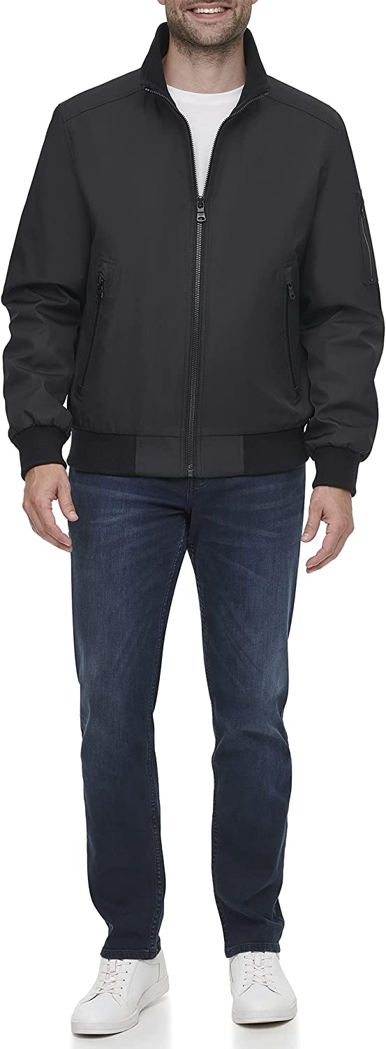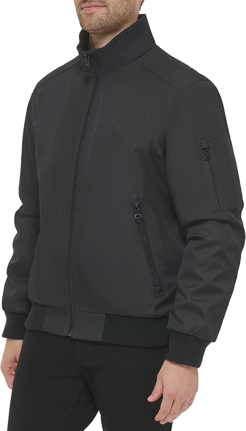 Calvin Klein men's knit hem bomber zip front jacket with details