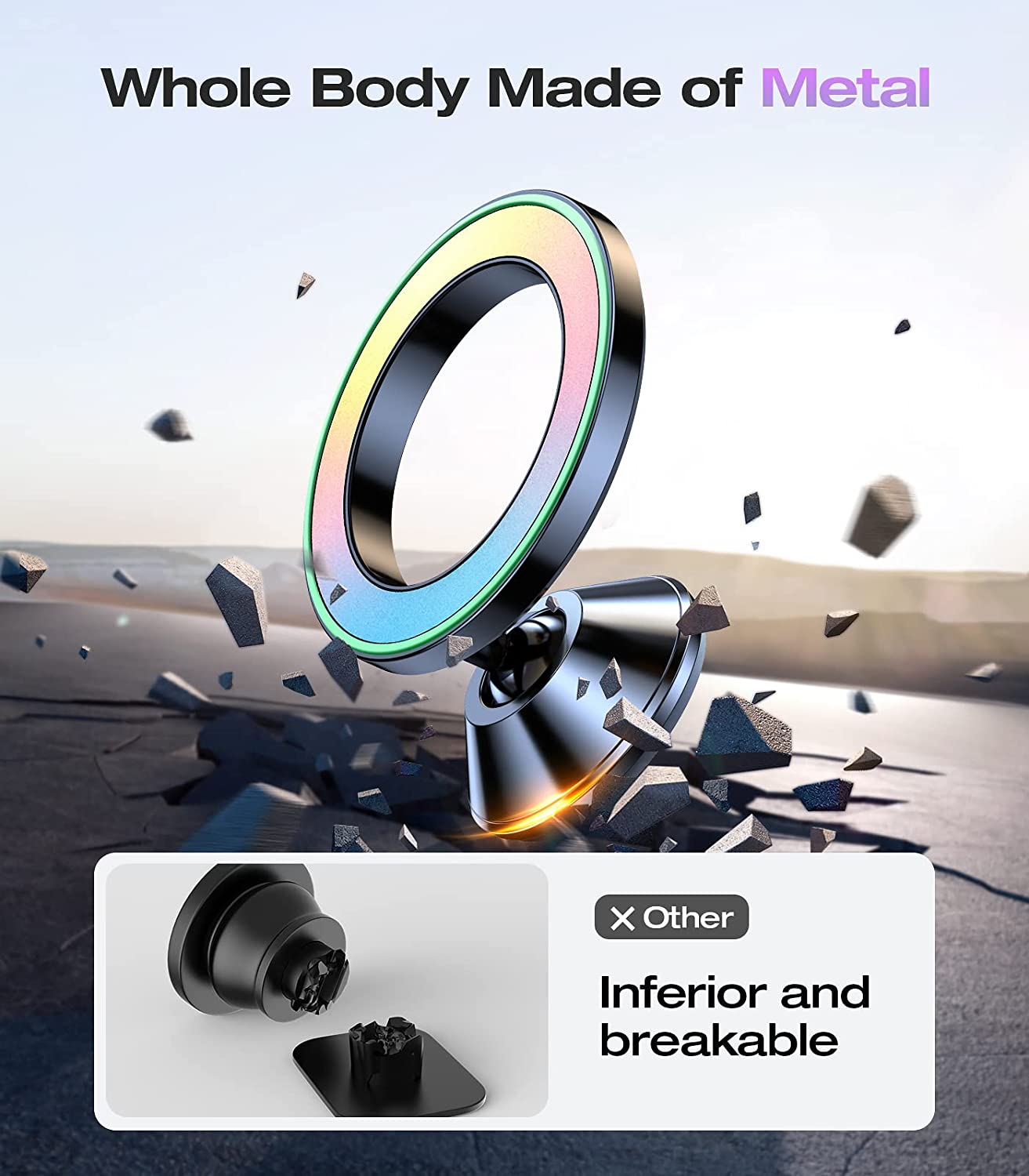 VICSEED Fit for MagSafe Car Mount [Colorful Gradient] Magnetic Phone Holder for Car Dashboard [Lasting & Never Fall] All Metal Sturdy Phone Mount for Car Dash Fit iPhone 14 13 12 Pro Max All Mobile