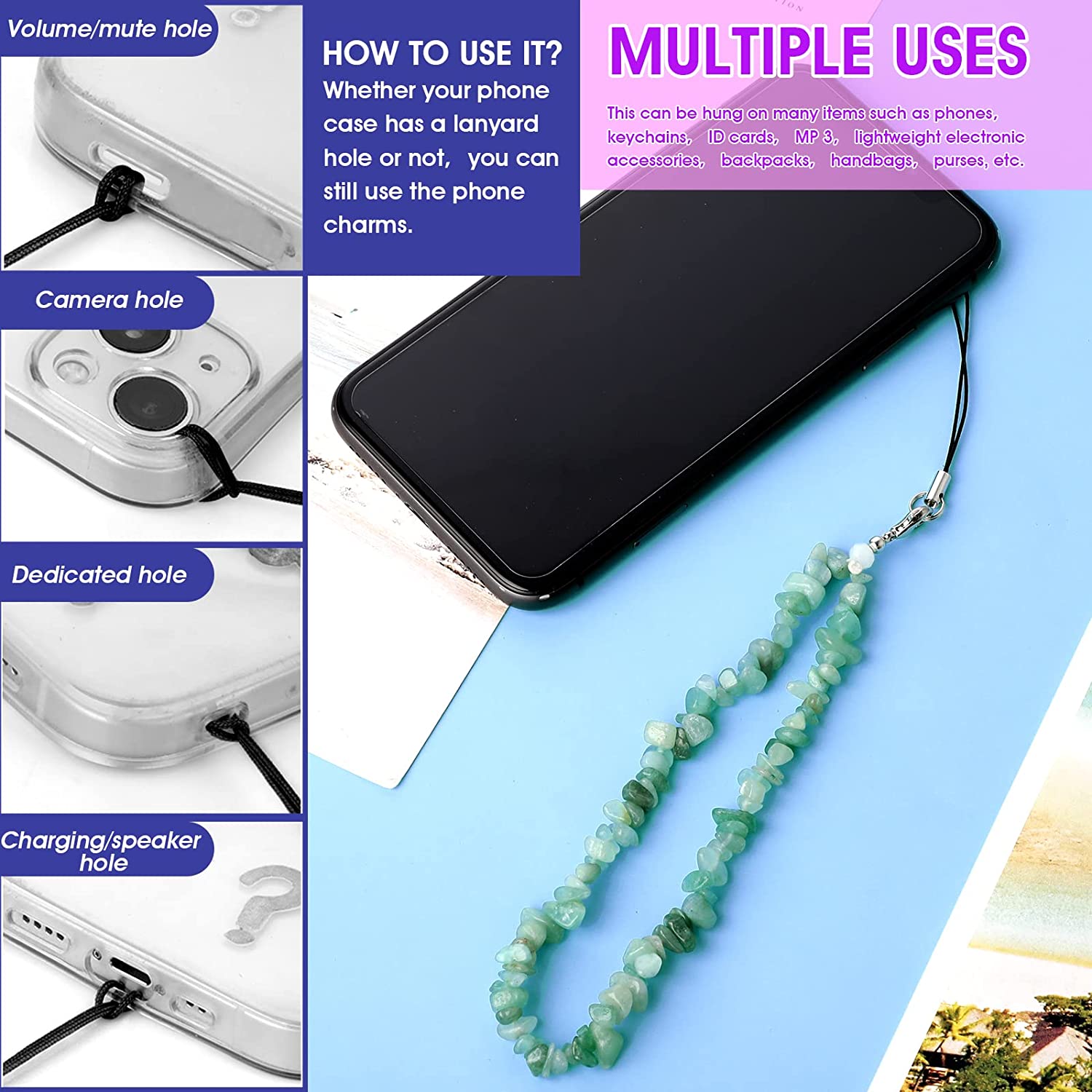 【High-quality materials】 WLLHYF phone lanyards are made of high-quality plastic and resin materials, high-quality plastic is not easy to break. Durable, high-quality resin material makes the appearance of phone wrist strap look shiny and charming, full of luster, and lets you love