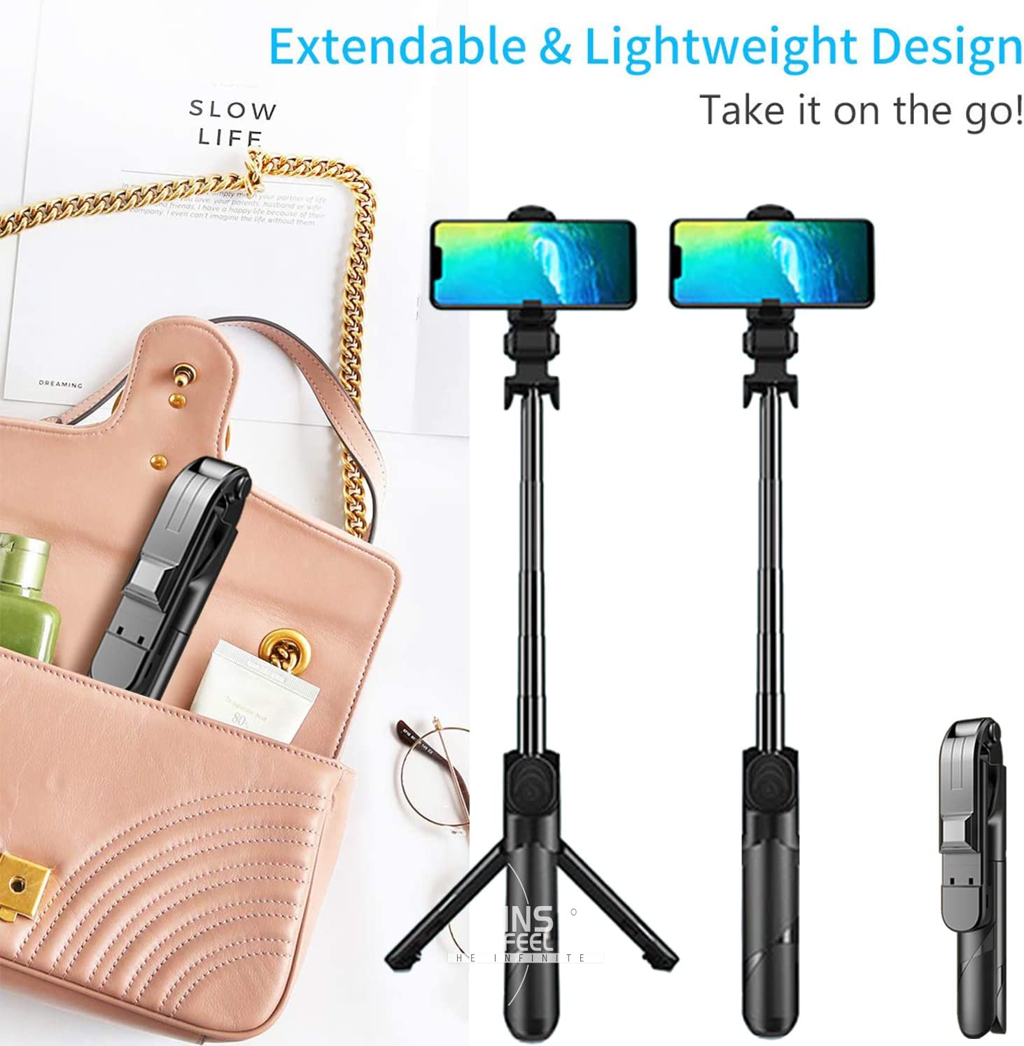 【COMPACT & LIGHTWEIGHT】3 in 1 mini cellphone selfie stick, extendable tripod stand, 8 inches folded size & up to 38 inches extension length, only 6 oz weight. Convenient for you to keep it in your pocket or hand.