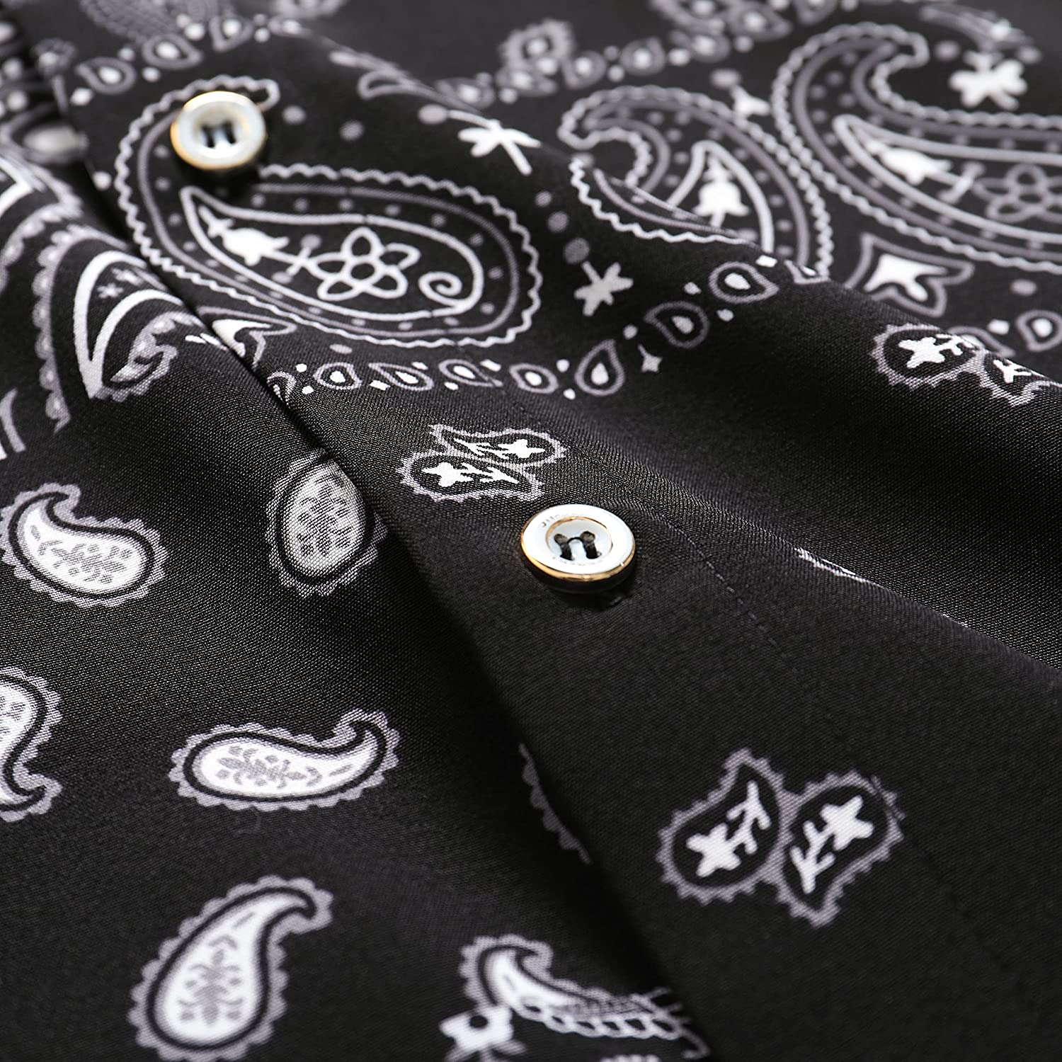 SheLucki Hawaiian Shirt for Men, Unisex Summer Beach Casual Short Sleeve Button Down Shirts, Printed Palmshadow Clothing