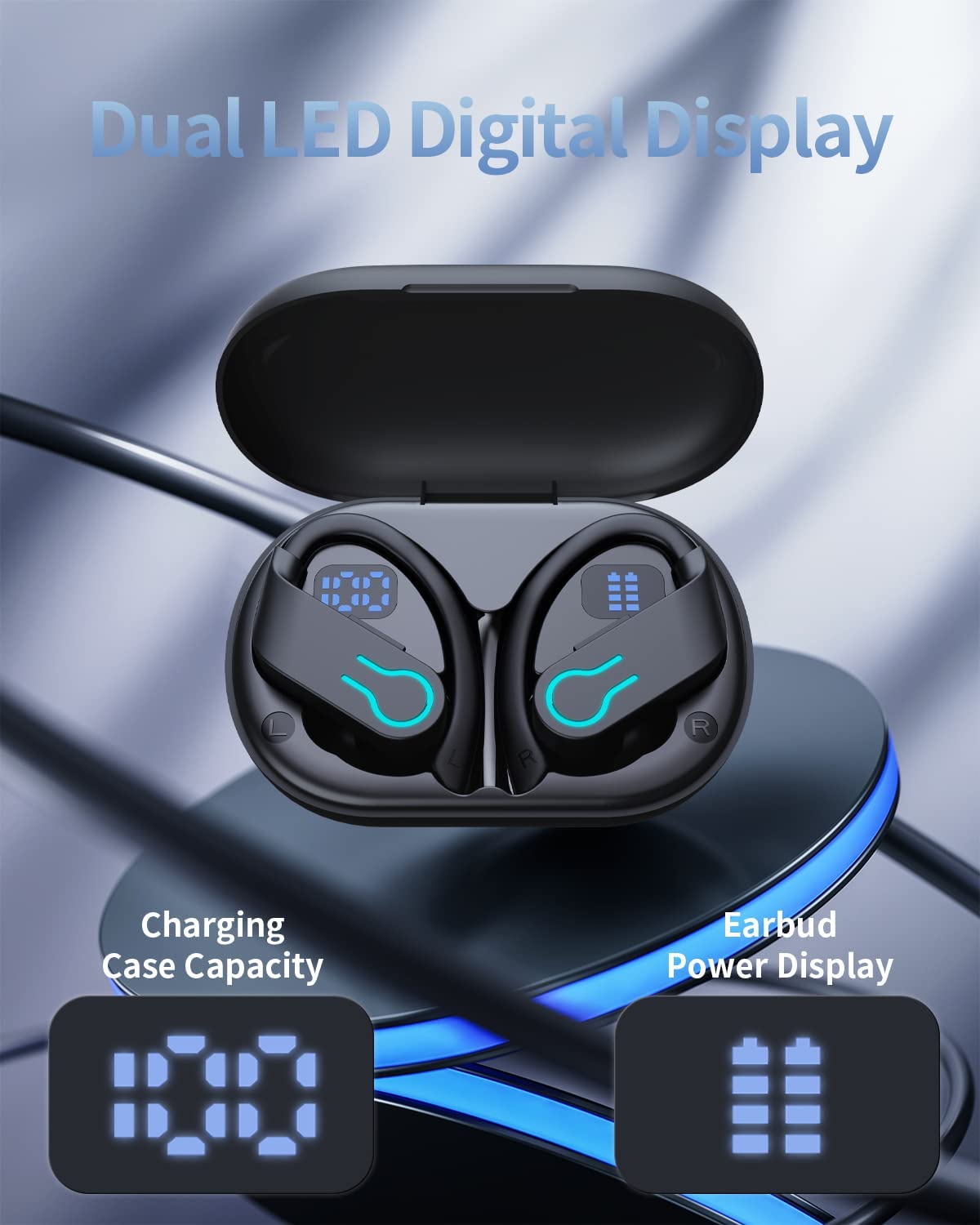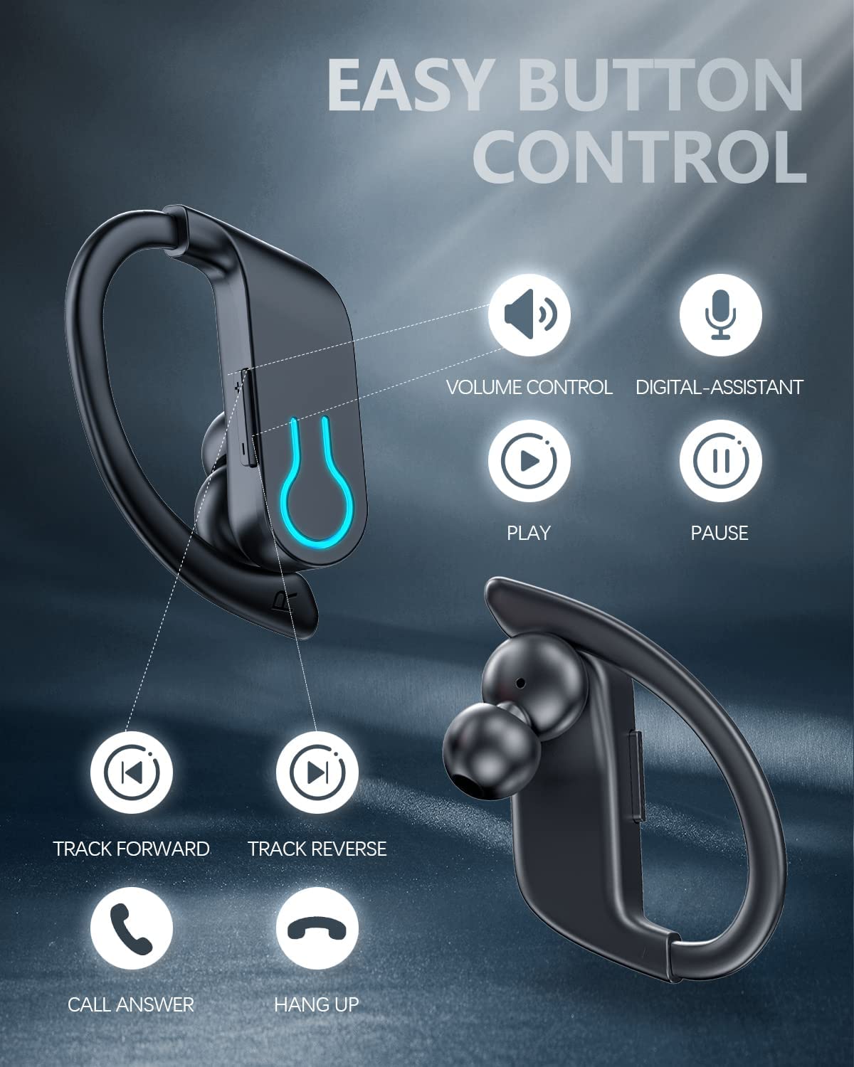 - ?【Bluetooth 5.3 and One Step Auto Connect】With advanced bluetooth headphones 5.3 technology, you can get a 2X fast transfer speed (75% higher than the previous generation) and a more stable connection, almost no delay. Open the lid of the charging case, sport bluetooth earbuds can be automatically connected to the previous paired device, Put back the charging case, bluetooth earphones will automatically disconnect.