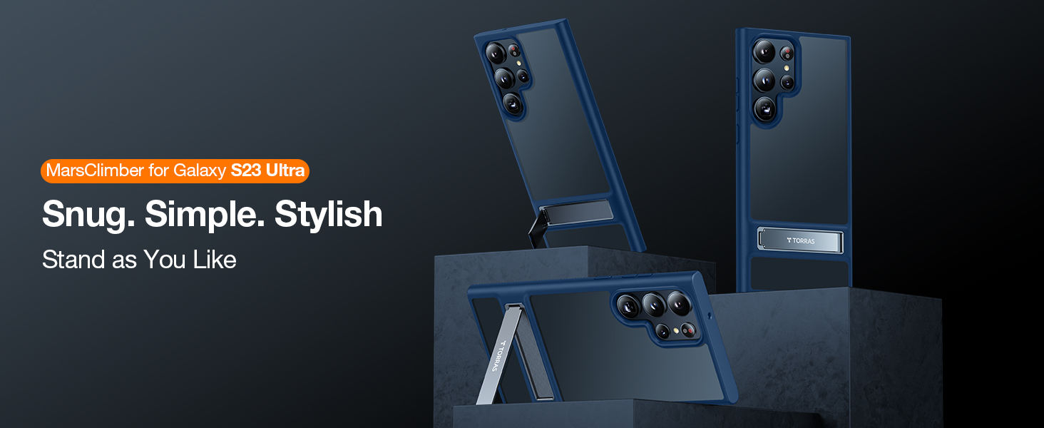 - [Hands-Free. Hassle-Free] TORRAS classic MarsClimber S23 ultra case is designed with a 3-way kickstand, which is free adjusted at 0-52° with self-locking stiffness. Without neck/wrist pain caused by unergonomic angles, you could always find a comfortable mode for watching, working, and video-calling via using the Galaxy S23 ultra case with stand