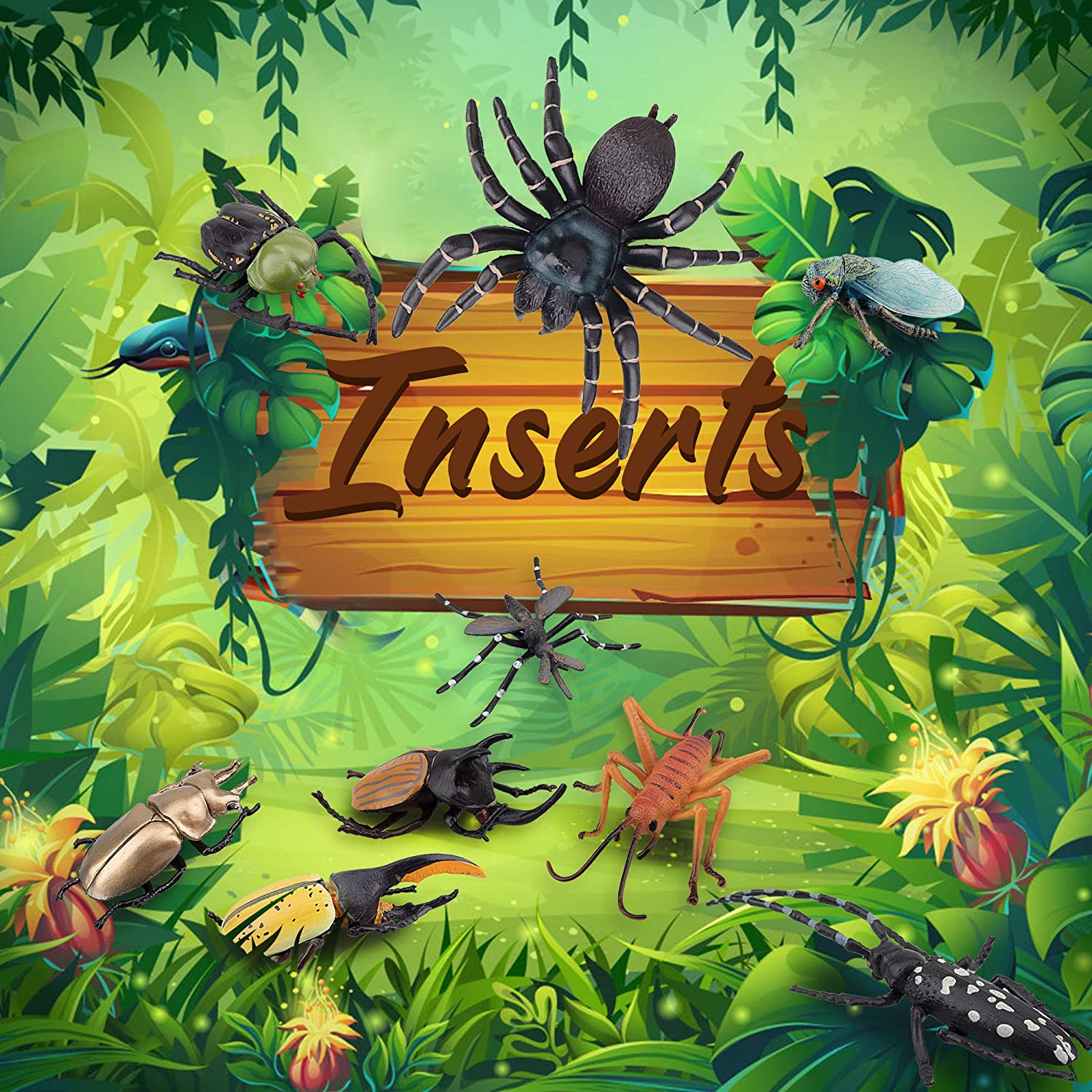 - ✔ 12PCS HIGH QUALITY INSECTS FIGURINES - Includes 1 Dynastes Hercules, 1 Cicada, 1 Macular Longhorns, 1 Scarab Cheirotonus Jansoni Jordan, 1 Spider, 1 Cricket, 1 Aedes Mosquito, 1 Eupatorus Gracilicornis, 1 Housefly, 1 Ant, 1 Bee, 1 Allotopus Rosenbergi. Totally includes 12 bugs figurines.