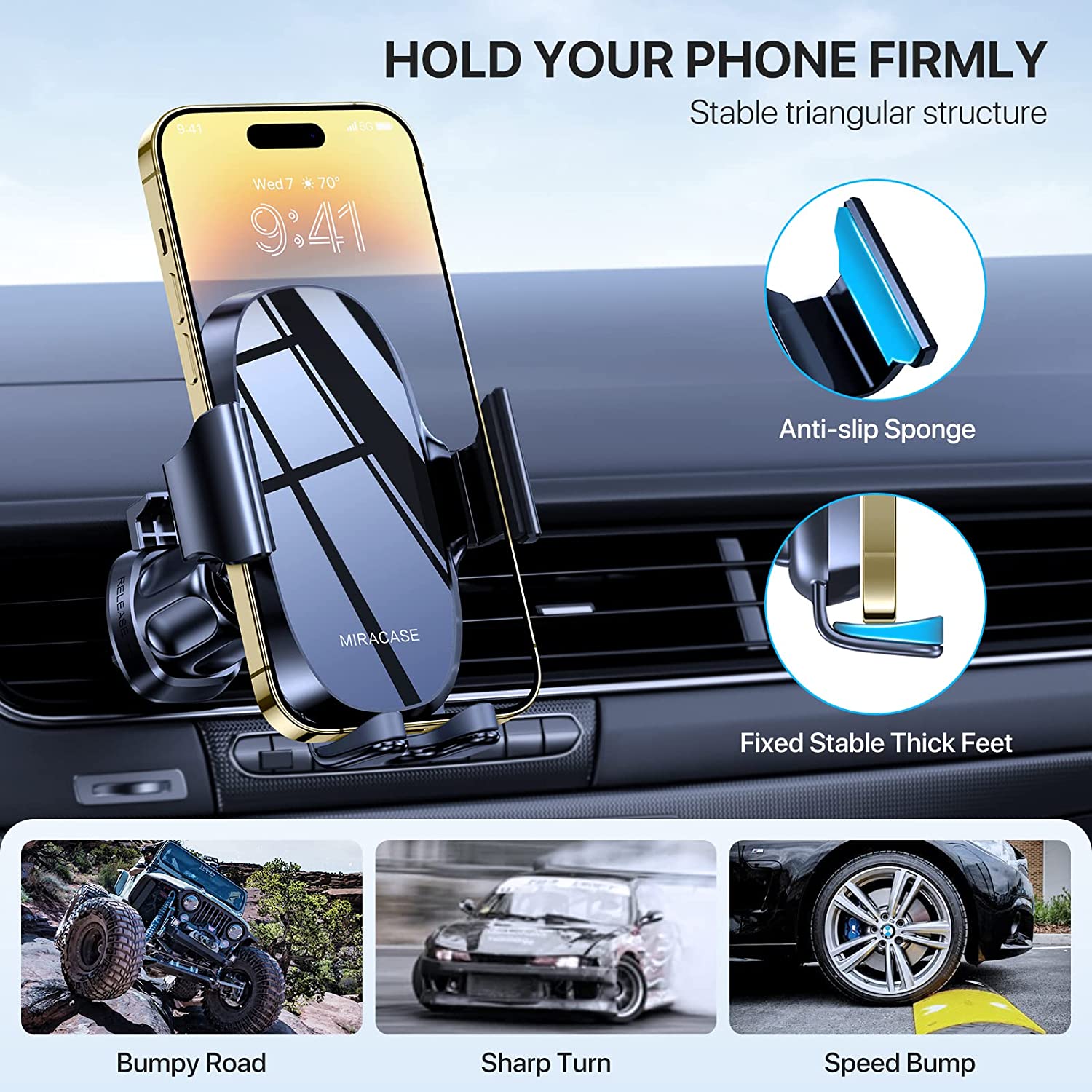 Miracase Phone Mount for Car, [Strong Suction] Universal 3 in 1 Car Phone Holder Mount for Dashboard Windshield Air Vent Compatible with iPhone 14 13 12 11 Pro Max Mini All Mobile Phones