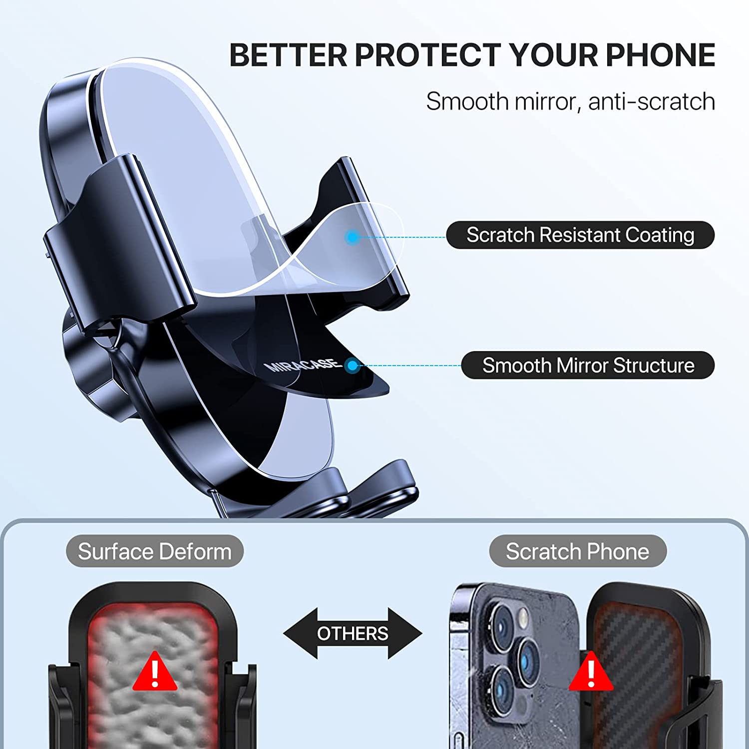 ?[UNIQUE AND COMPREHENSIVE PROTECTION] Over 12-Year technology precipitation, Miracase were the first to introduce the most beautiful and functional car phone mount. The clamps adopt smooth mirror structure, elegant surface is far superior to other types of car mount and the scratch resistant coating avoid phone being scratched. Sponge on the 2-side clamps & thicken rubber holding feet provide strong support for phone, don't worry your phone fall off while driving.