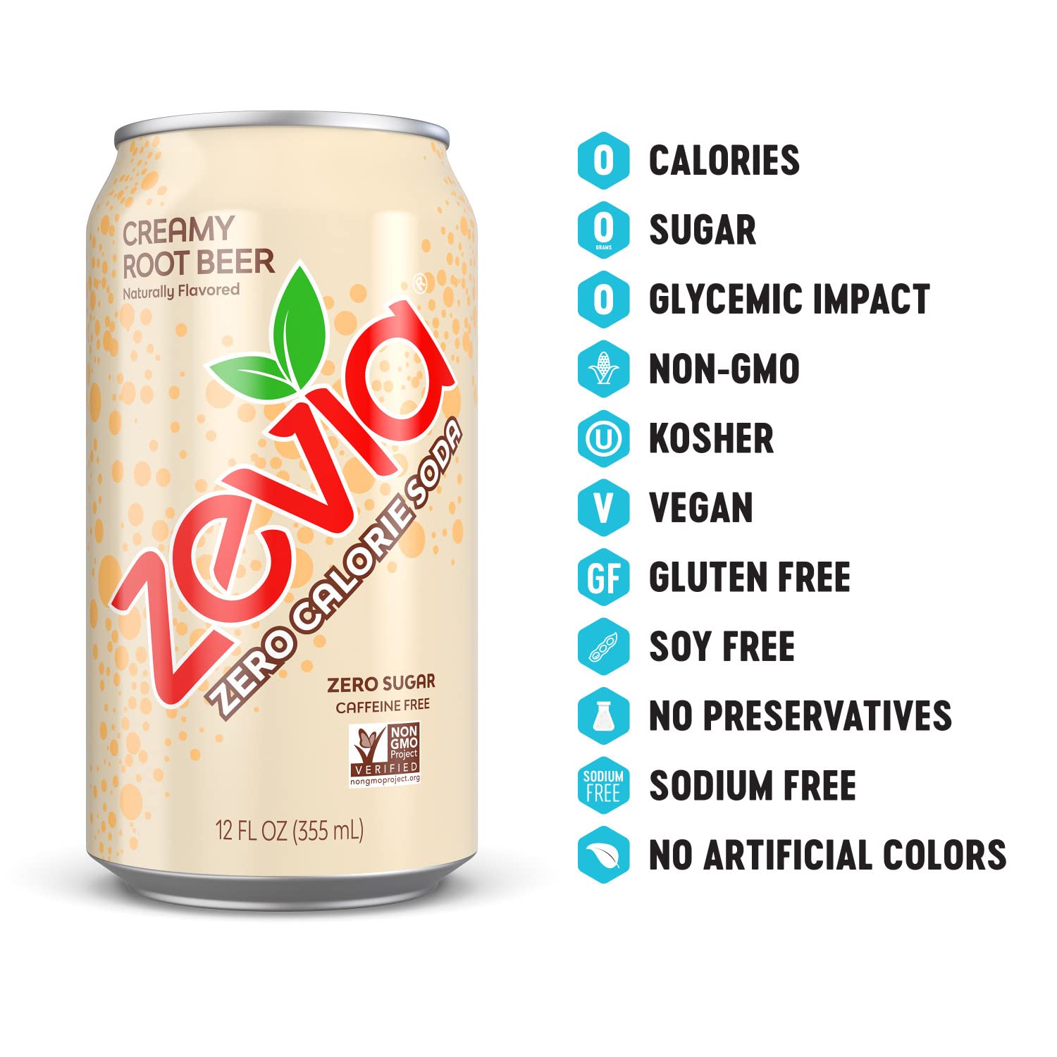 Velvety smooth and full of rich flavor, Creamy Root Beer is a zero calorie, zero sugar beverage with new, yet classic taste. Enjoy your Zevia Creamy Root Beer straight out of the can or pour into a frosted mug and add a scoop of vanilla ice cream.