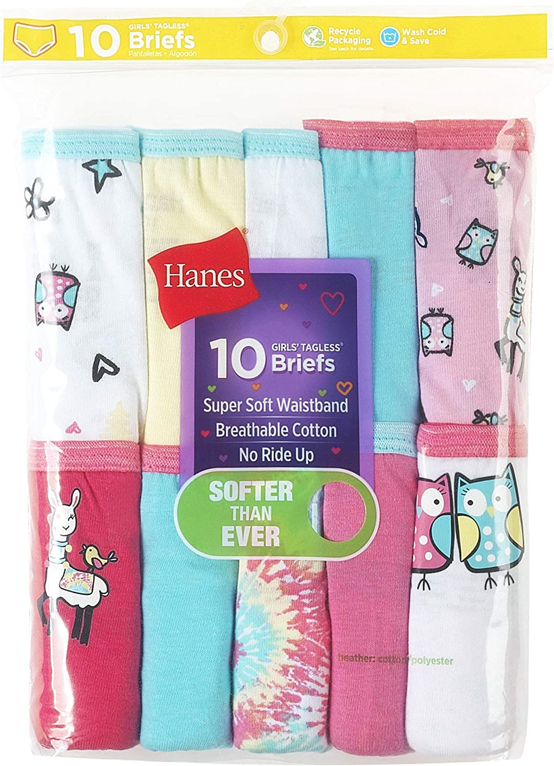 Constructed from 100 percent ring-spun cotton, Hanes® Girls’ Brief Underwear is soft, breathable, and crafted with her comfort in mind. Even better, these kids’ panties come in a convenient value-pack of six assorted designs – so your child can express her style with fun colors and prints. That’s a good thing as comfort-first details like smooth, non-binding leg bands designed to prevent ride-ups will have her reaching for this girls’ cotton underwear every day. Pre-shrunk so you can feel confident that the fit stays true, these panties for girls feature classic briefs styling with full coverage front and back.