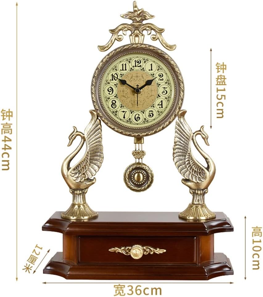 ZLXDP European Antique Mute Desk Clock Large Living Room Quartz Clock Atmospheric Brass Accessories Clock Pendulum Clock Gifts