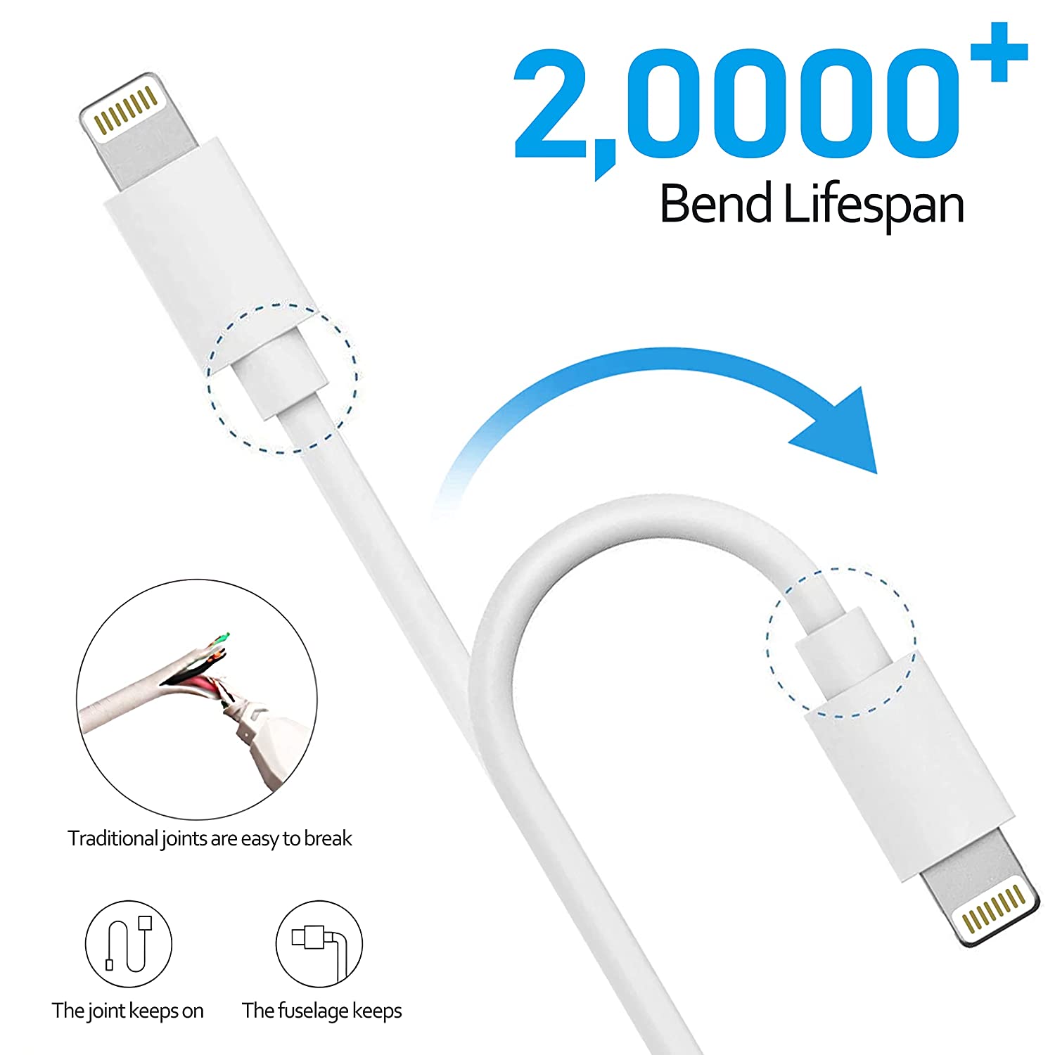 - Superior Durable iPhone Cable:20X more durable and sturdier than original iPhone charging cables - Our iPhone USB cable are made of military grade material and space aluminium alloy, withstand at least 20,000 plugging and unplugging lifespan and 20,000 bending cycles. Flexible and tangle-free, meet all kinds of daily connection needs and long-term use.