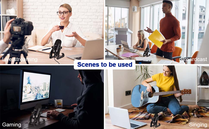• 【Scope of Application】 Studio microphone is ideal for home, games in project studios, podcasts, Zoom meetings, streaming, Skype chats, online meetings, podcasters, YouTubers, vloggers, gamers and voiceover artists for gaming, live streaming, meetings, recording, unobstructed.