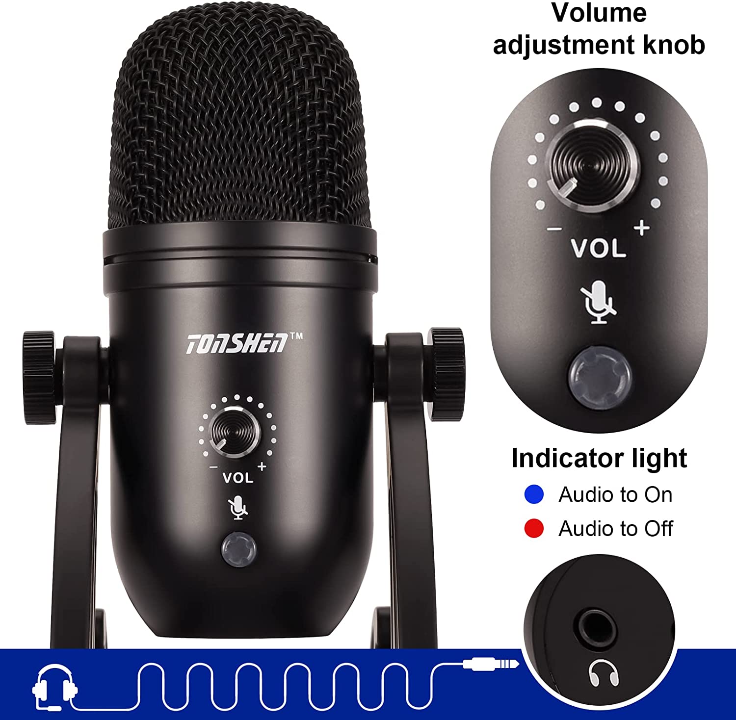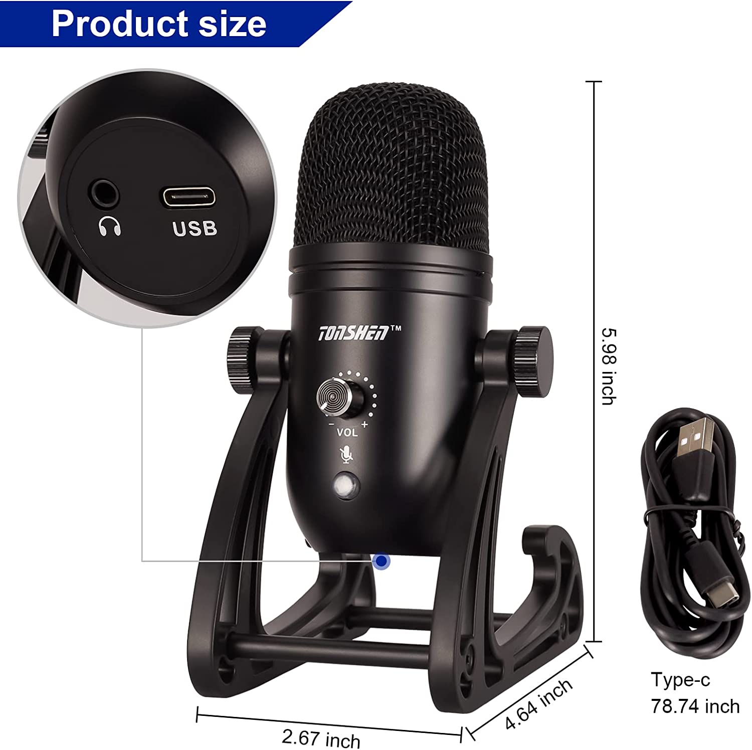 Tonshen USB Podcast Microphone Condenser Microphone for PC and Laptop Podcast Equipment Bundle Gaming Mic Studio Microphone for Singing, Vocal Recording, Streaming Supercardioid Pickup Pattern