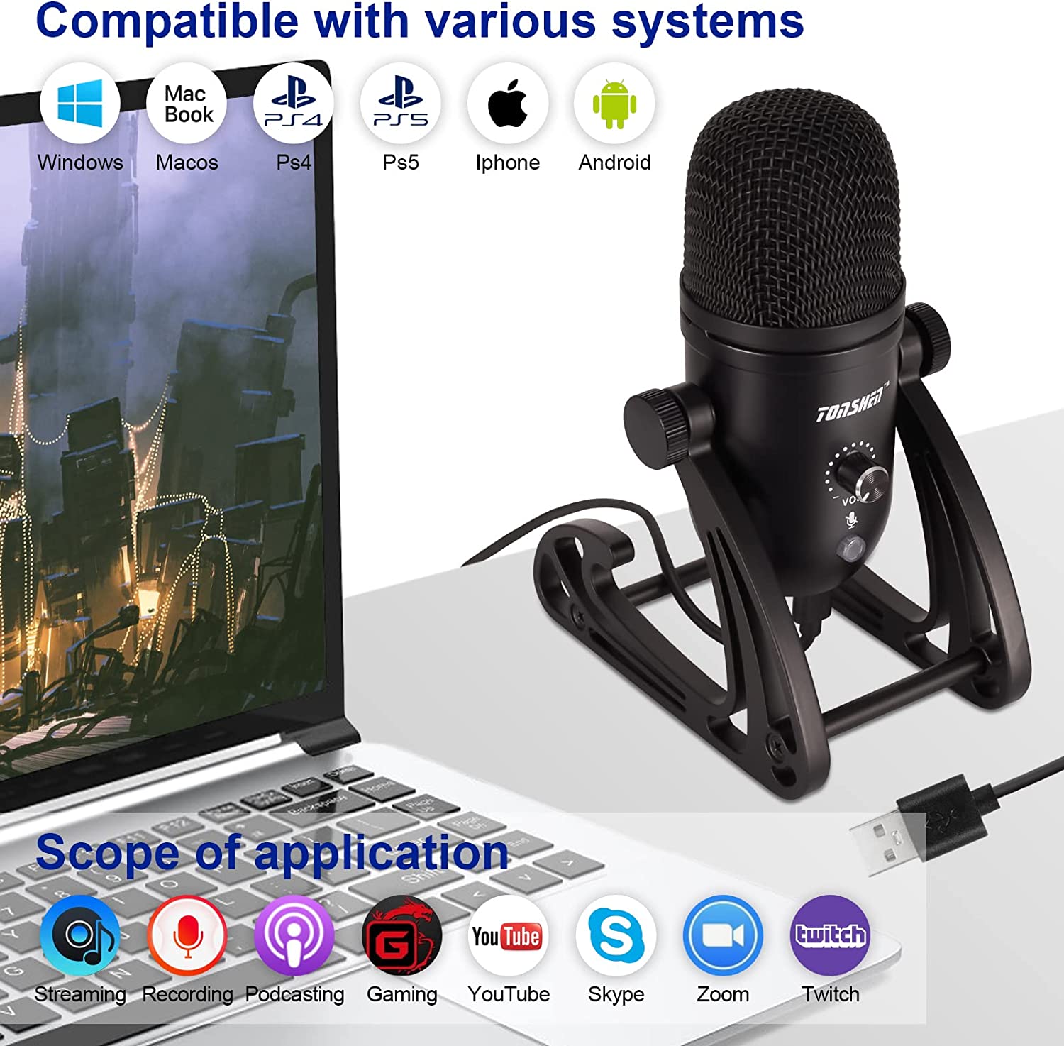 • 【Easy to Adjust】 The microphone for pc has a mute/noise reduction button and a knob to adjust the volume; the gaming microphone is equipped with a headphone jack. If you want to hear your own voice, you can pass this hole.