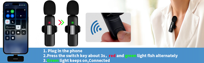 • ?【Automatic Connection & Plug and Play】This wireless microphone is easy to operate, just plug the receiver into your device, then turn on the power switch of the portable microphone, the two parts will be paired successfully automatically, without adapters, bluetooth or any apps program.