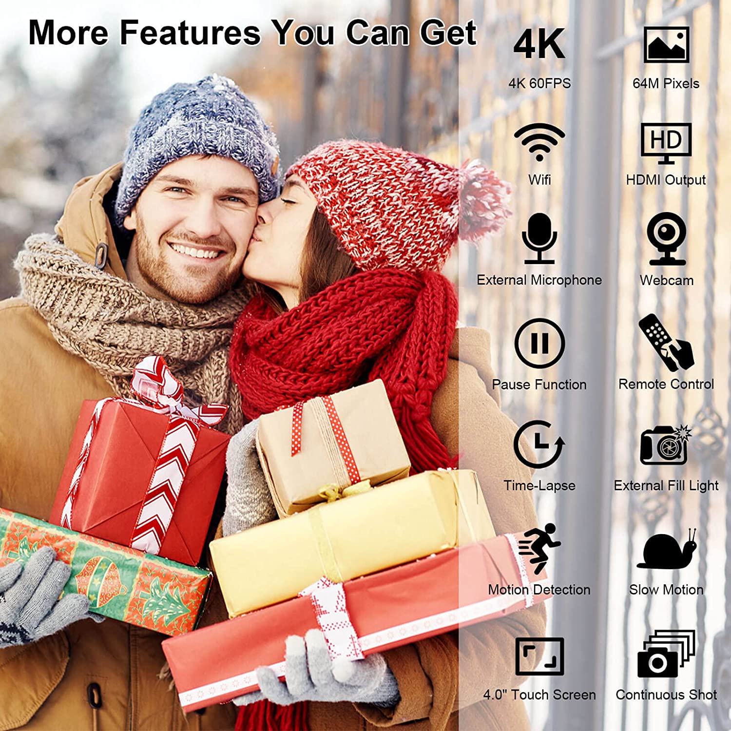 - 【 4.0" Touch Screen 4K Video Camera & 64MP】It adopts for newest upgraded 13.0MP sensor, and the maximum picture pixels is 64.0M. The vlogging camera supports an 18X Digital Zoom and 4.0-inch touch screen which can rotate up to 270 degrees, so this video camera camcorder can shoot high-quality images with rich details and record vivid videos of your meaningful time.