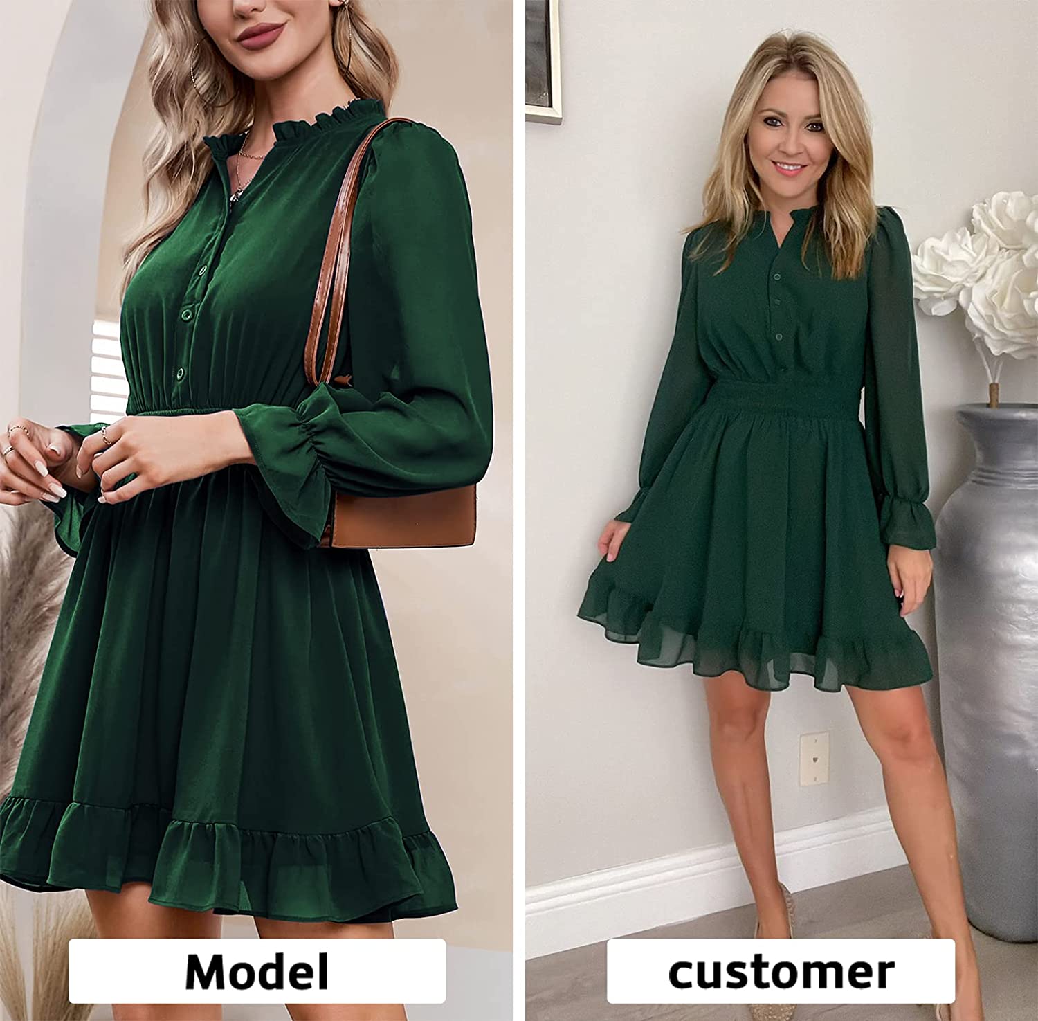 Feature: The mini dress is designed with gathered neckline and button. Plus, the sheer puff sleeve and the sheer back design adds a bit of charm and sexy to the dress. The dress cinches at the waist with its smocked waistband to accentuate your curve.