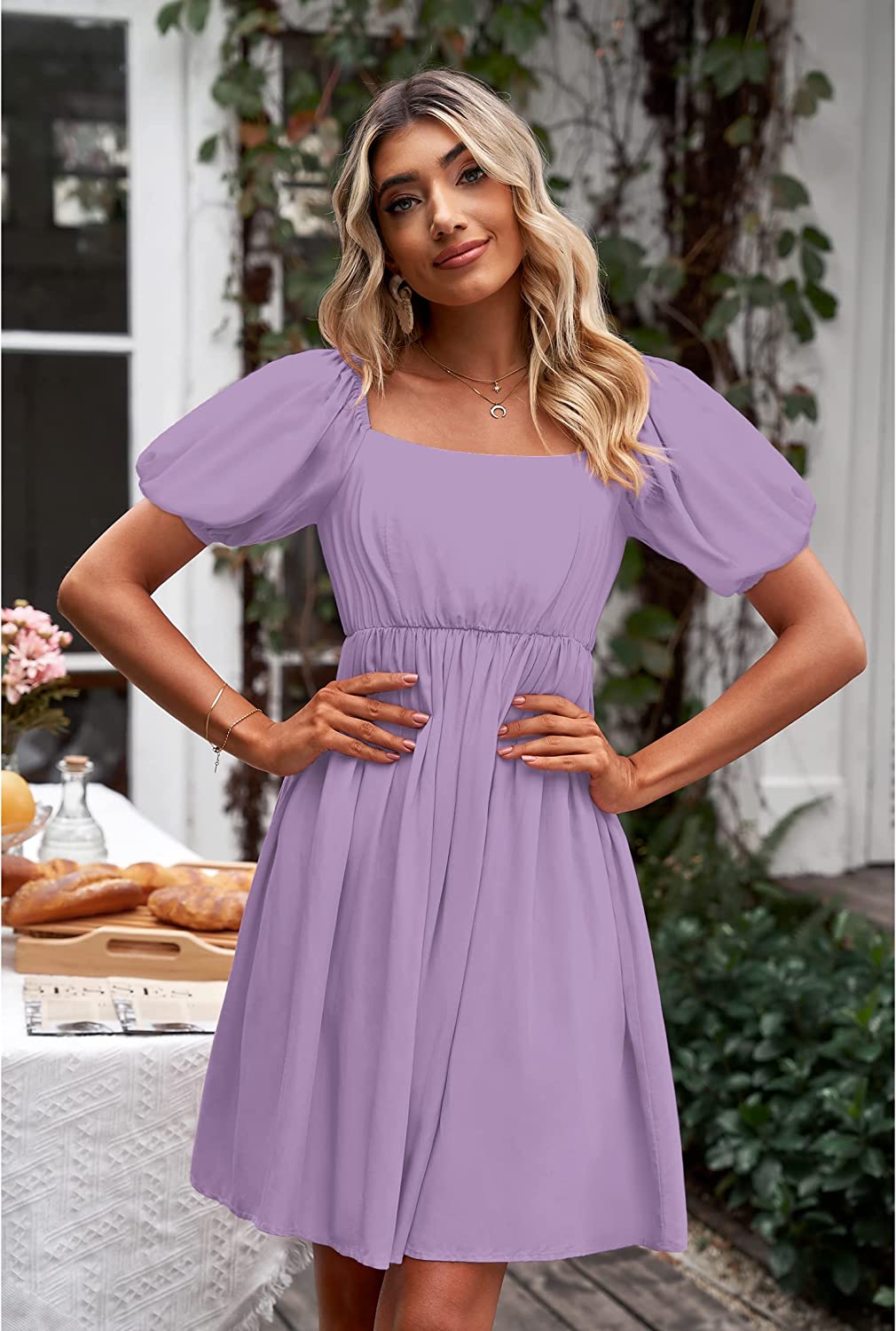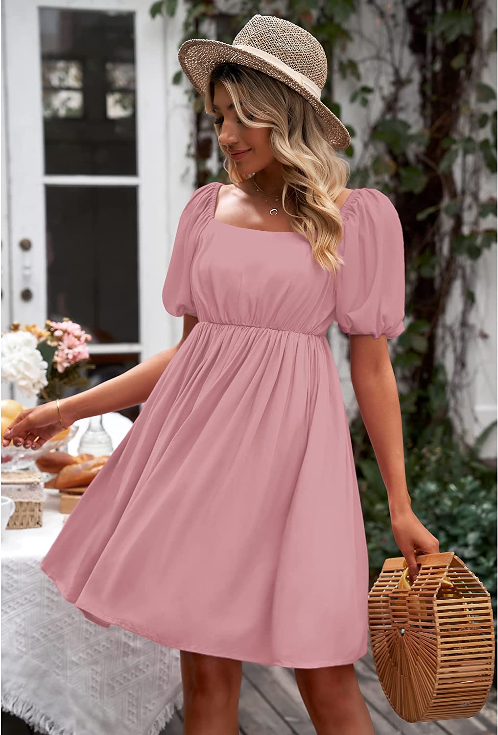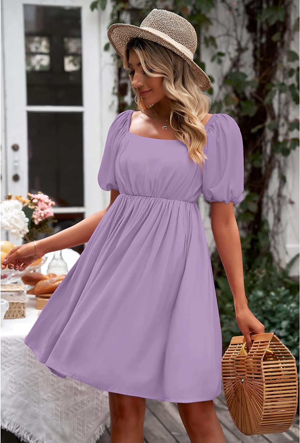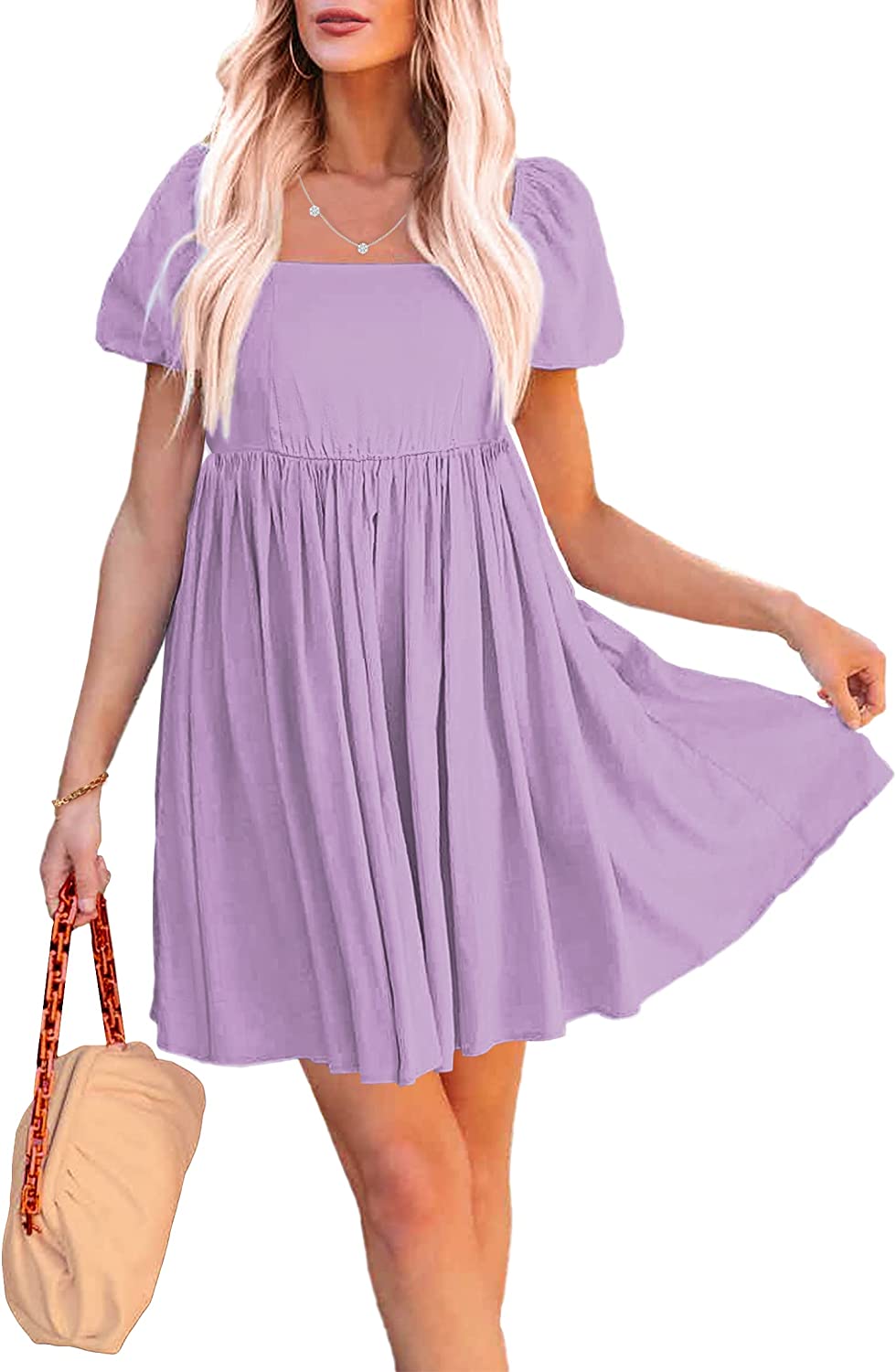 These going out dresses for women feature square neck, short puff sleeves, smocked back, a-line high waist swing dress. The vacation dresses for women are made of breathable material which is perfect for spring, summer and fall.