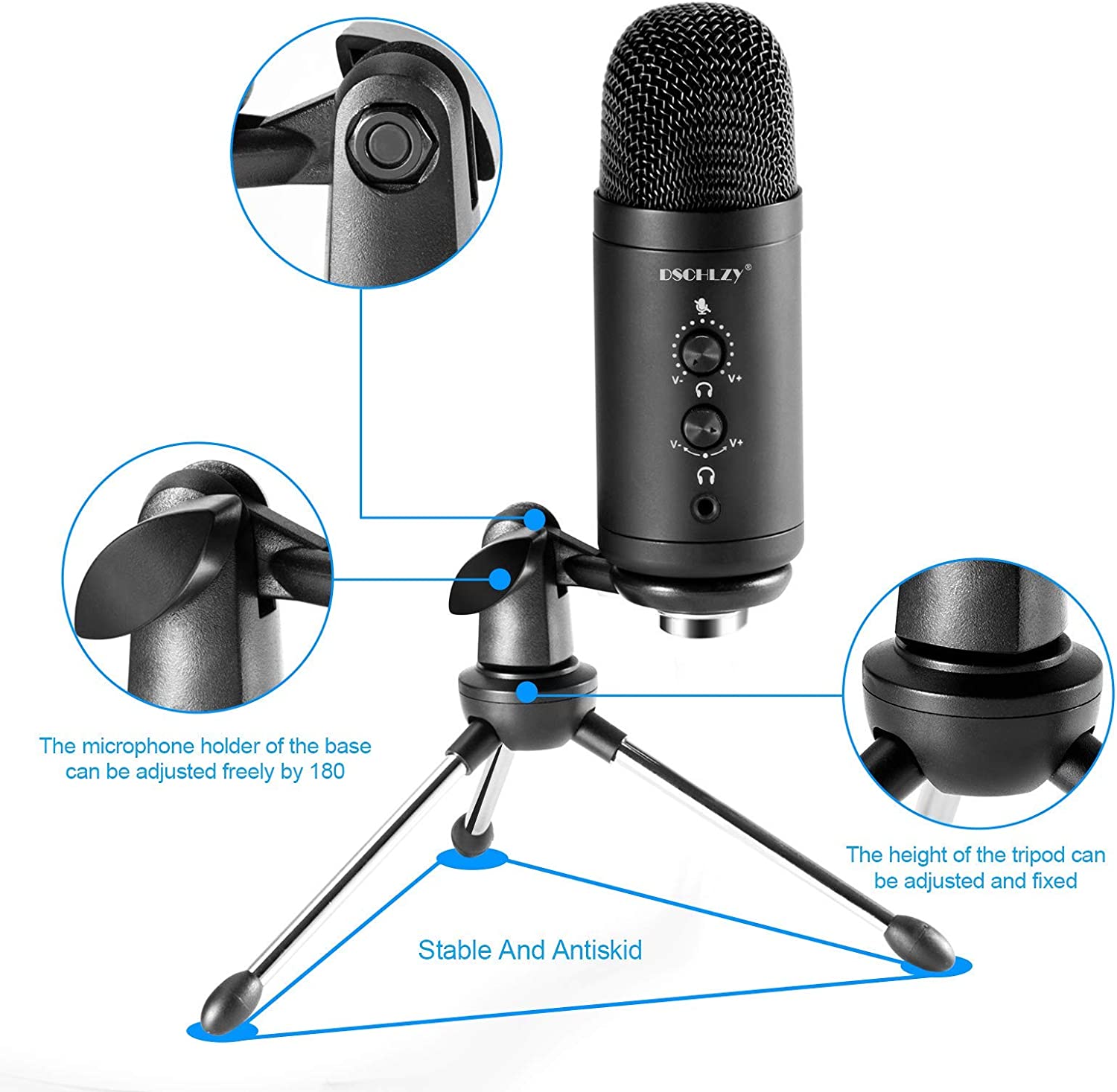 PACKAGE LIST AND WARRANTY :Condenser Mic + Small tripod + Mini shock absorbers + USB-B to USB-A Cable. DSCHLZY products provide 18-Month warranty to ensure a better shopping experience!we believe in our products so much that if you are not 100% satisfied for any reason, refund will be issued immedia